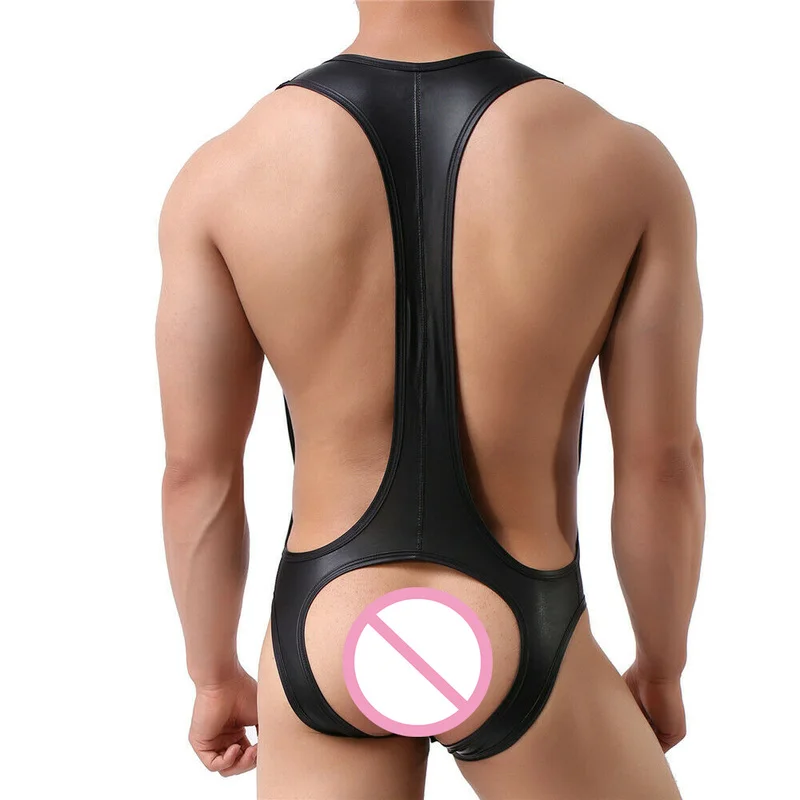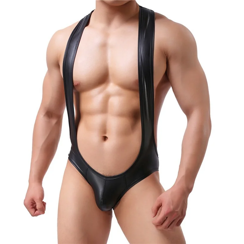 Сексуальные мужские боди из искусственной кожи, Борцовский костюм, открытый зад, бикини, комбинезоны, подтяжки, нижнее белье, гей костюм, нижнее белье
