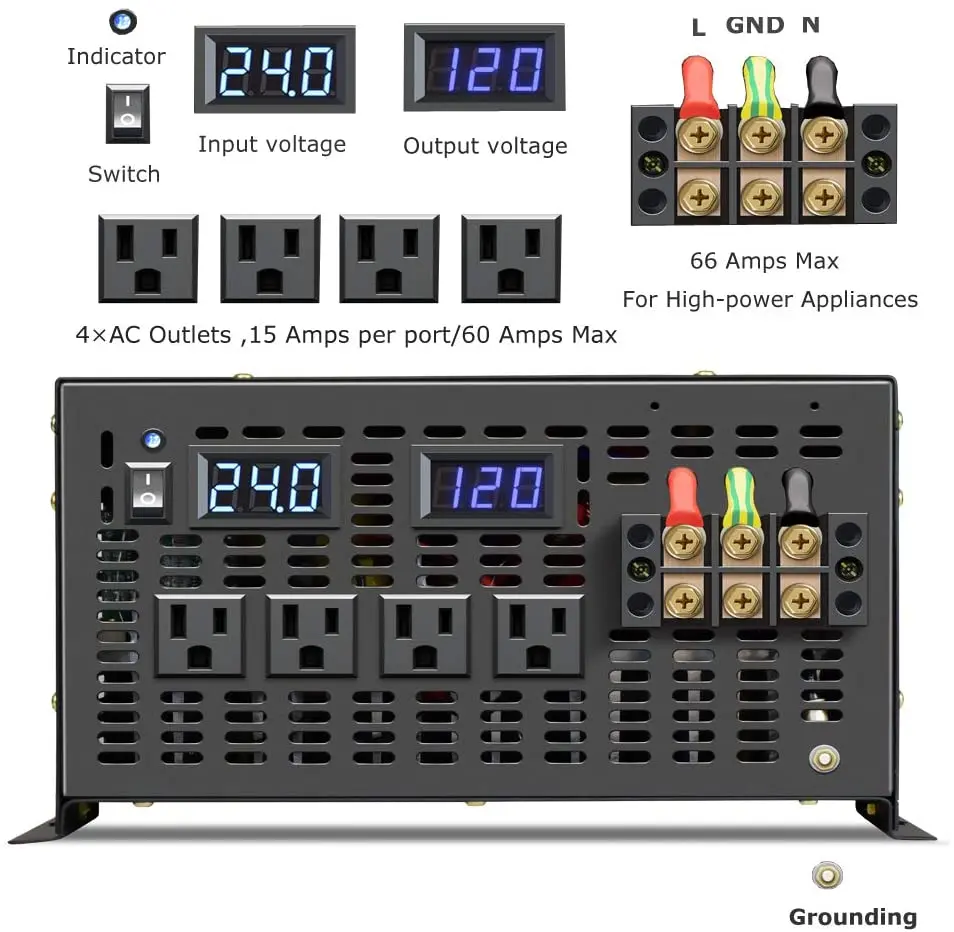 Высококачественная истинная медная индуктивность, фильтрует форму волны, обеспечивает настоящий выход чистой синусоиды переменного тока, защищает ваше оборудование.