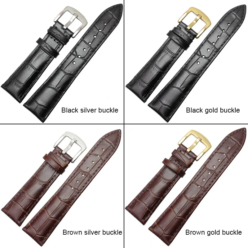 Ремешок для часов мужской, черный, коричневый, натуральная кожа, мягкий, серебристый, золотой, металлическая пряжка, 19 мм, 20 мм, 21 мм, 22 мм