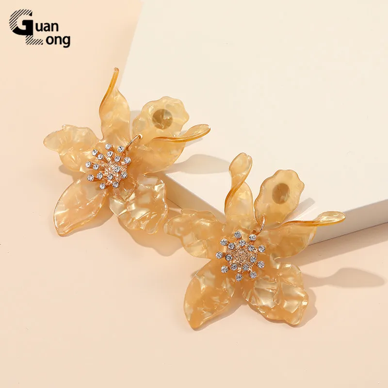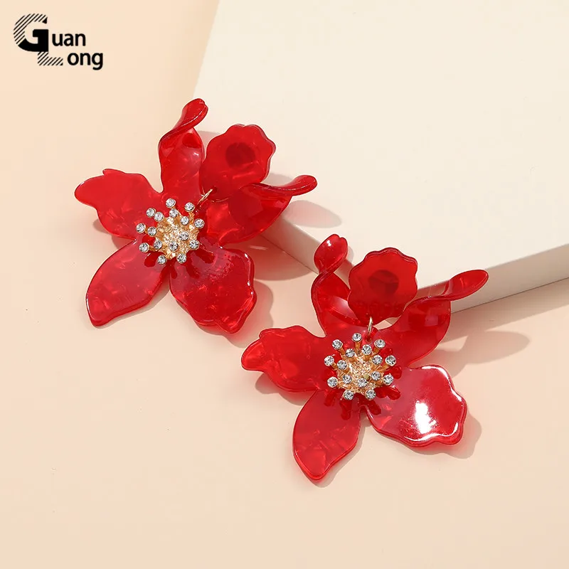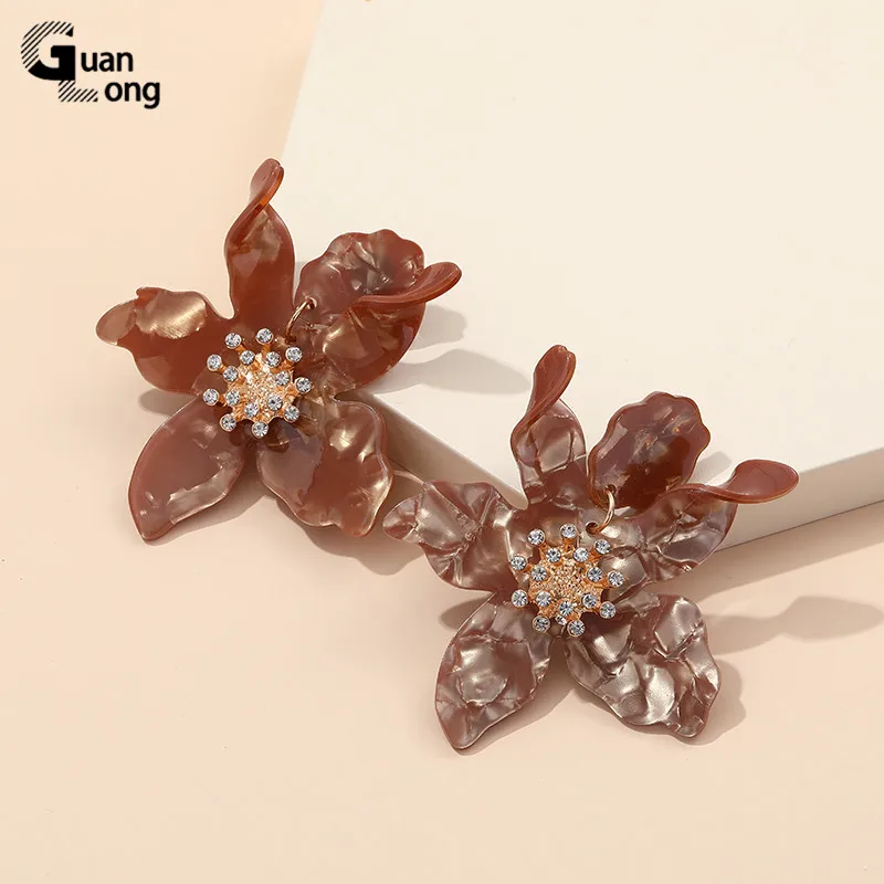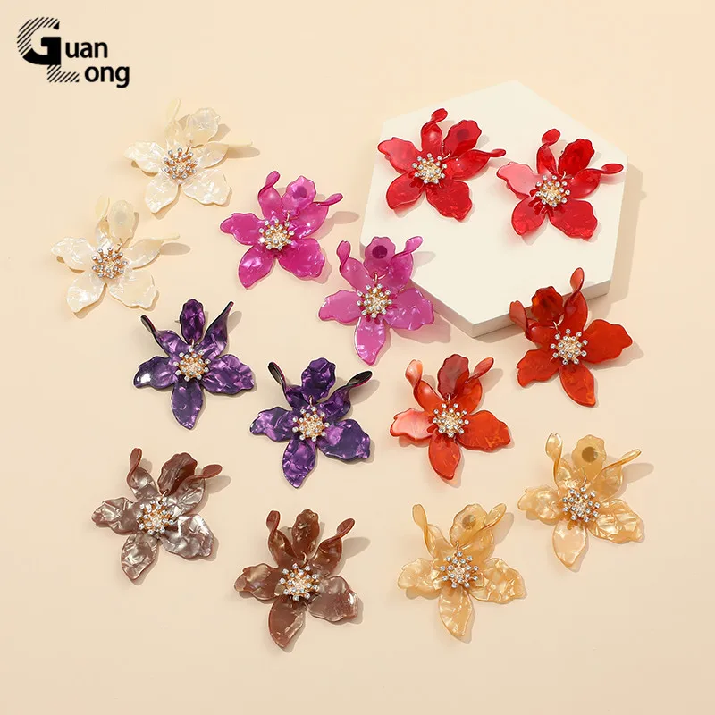 GuanLong Модные Акриловые большие серьги Стразы из смолы, ювелирные изделия для дропшиппинга, оптовая продажа, 7 цветов