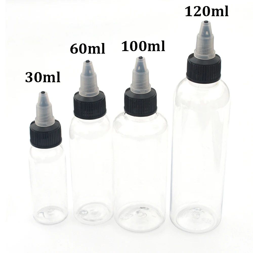 100 шт., пластиковые бутылки для дозирования, 30 мл, 60 мл, 100 мл, 120 мл