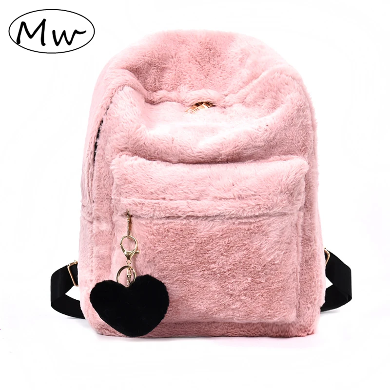 Луна дерева, Искусственный мех рюкзак кулон сердцы мягкая высоко- качественная фланель большой простой рюкзак Для женщин розовый чёрный, белый цвет рюкзака 2018