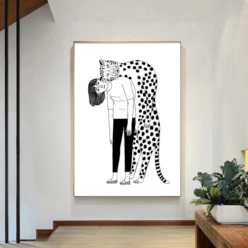 Постер AFFLATUS с леопардовой девушкой в скандинавском стиле, настенная живопись на холсте, черные и белые постеры и принты, настенные картины для декора гостинойОписание: настенная живопись на холсте, постеры и принты, настенные картины для гостиной, холст, искусство, скандинавский постер, детская комната, холст, поп-арт, домашний декор