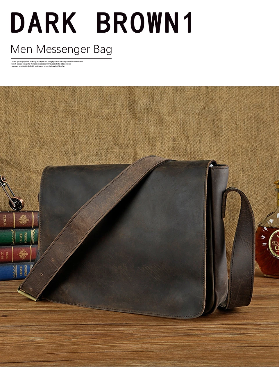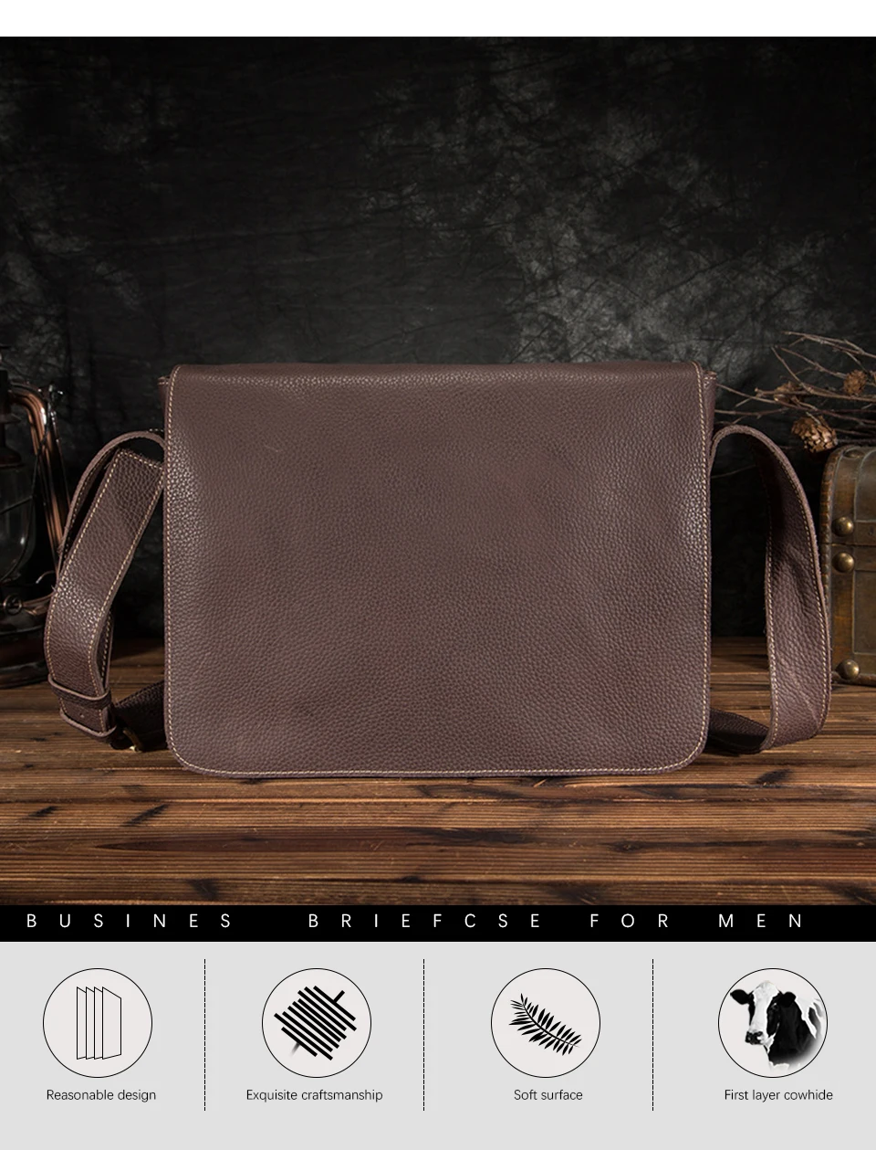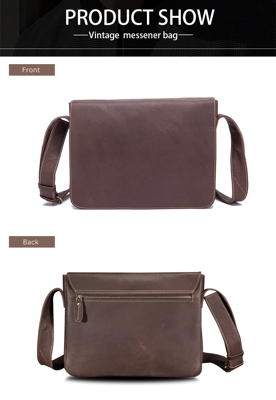 Повседневная сумка-мессенджер для мужчин, модная сумка из натуральной воловьей кожи для ноутбука 13 дюймов, чемоданчик на ремне через плечо, 3164