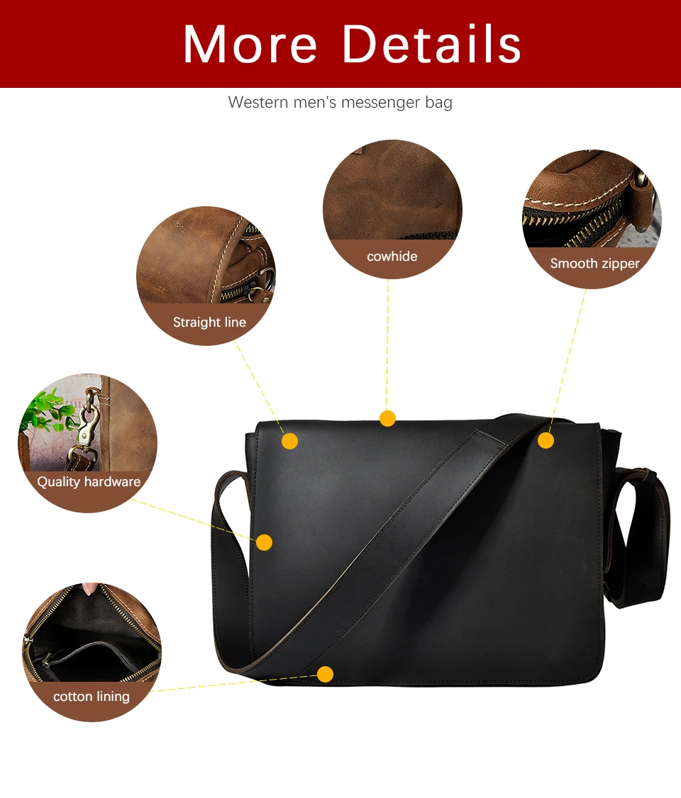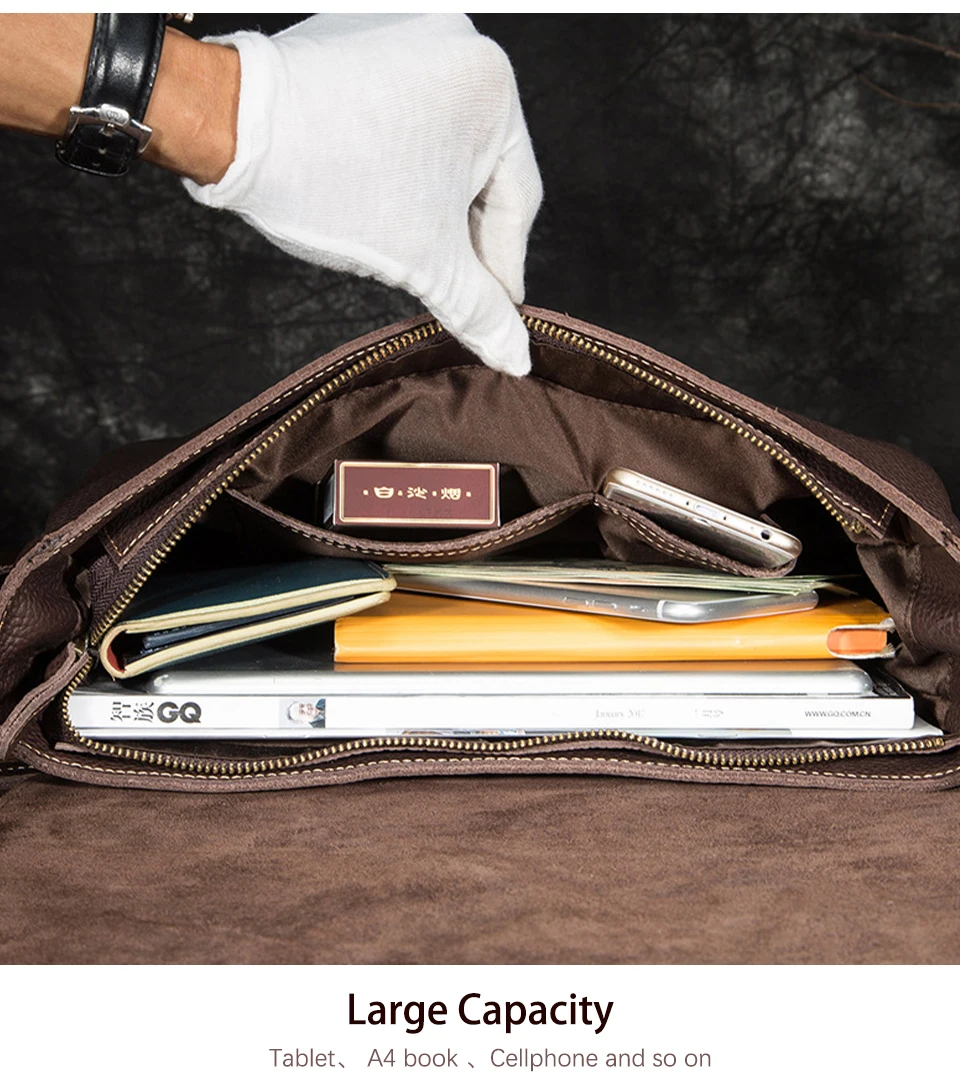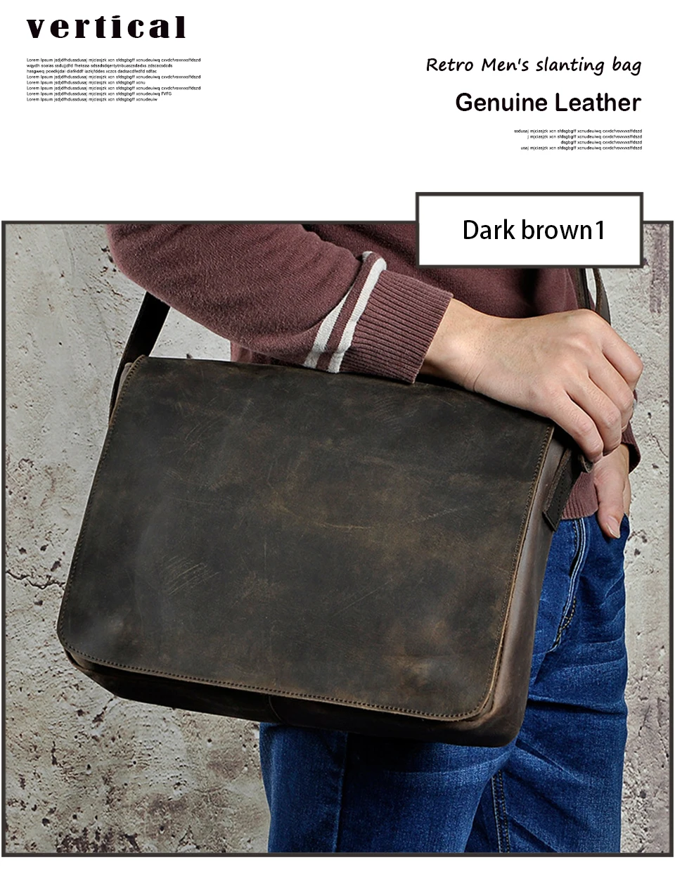 Повседневная сумка-мессенджер для мужчин, модная сумка из натуральной воловьей кожи для ноутбука 13 дюймов, чемоданчик на ремне через плечо, 3164