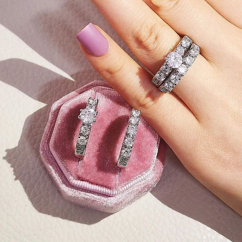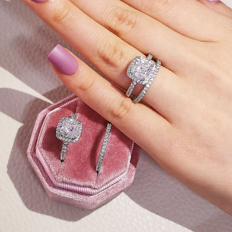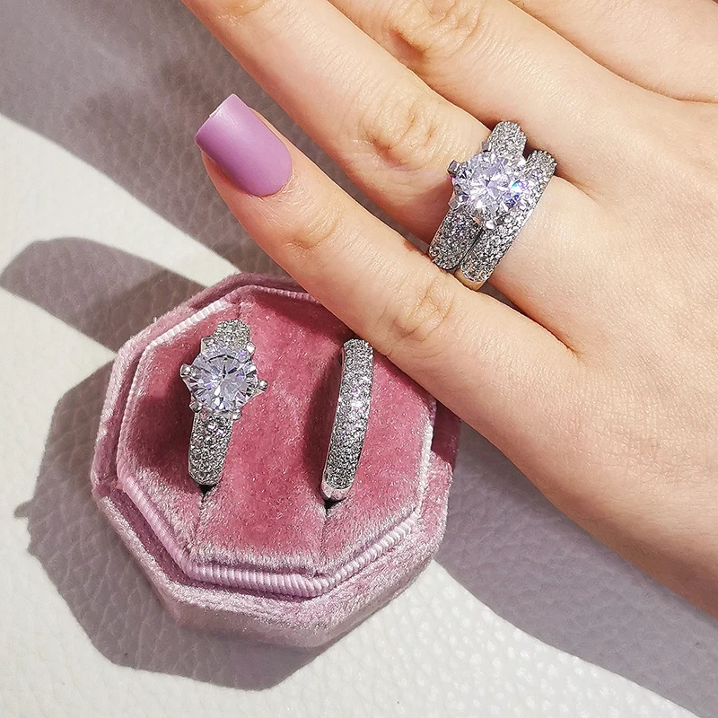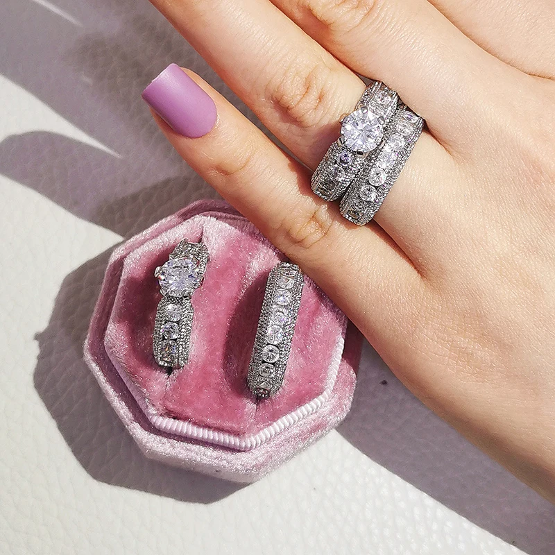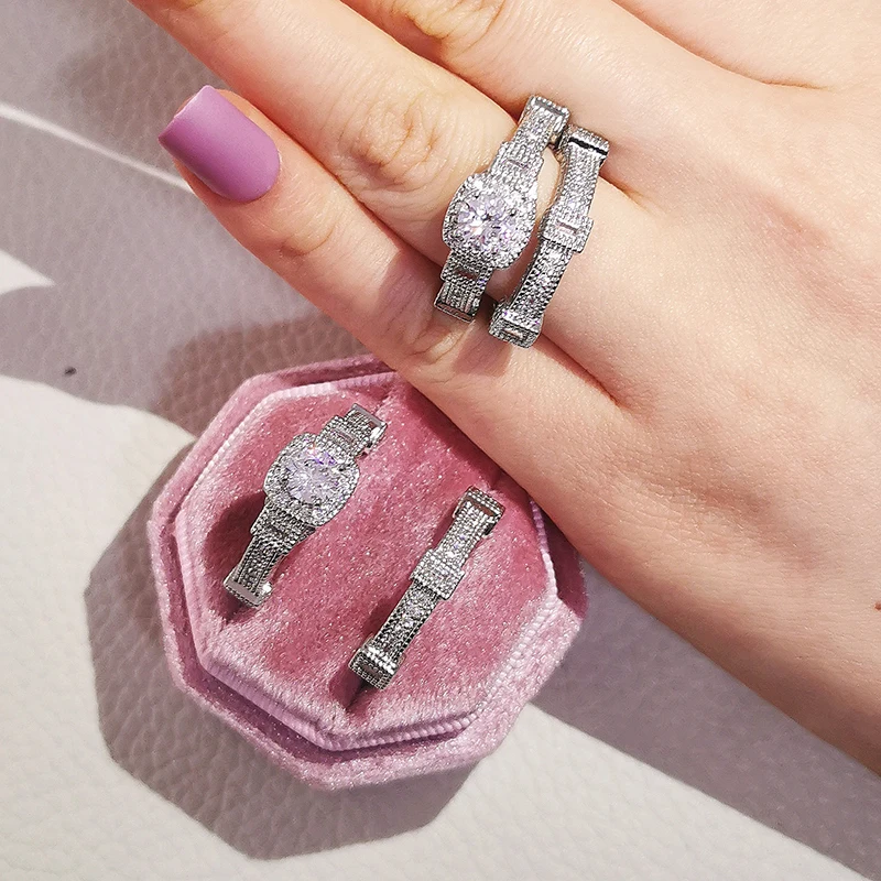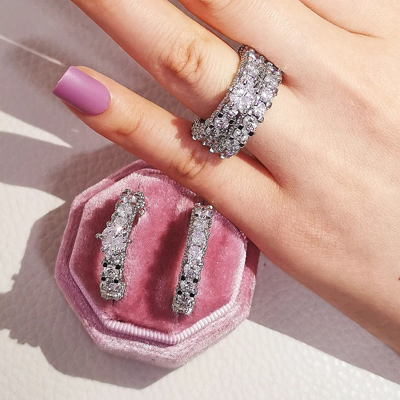 Новинка 2023 роскошные большие свадебные кольца серебряного цвета роскошный набор для невесты для женщин обручальное кольцо подарок для вечевечерние дизайнерские ювелирные изделия R4428