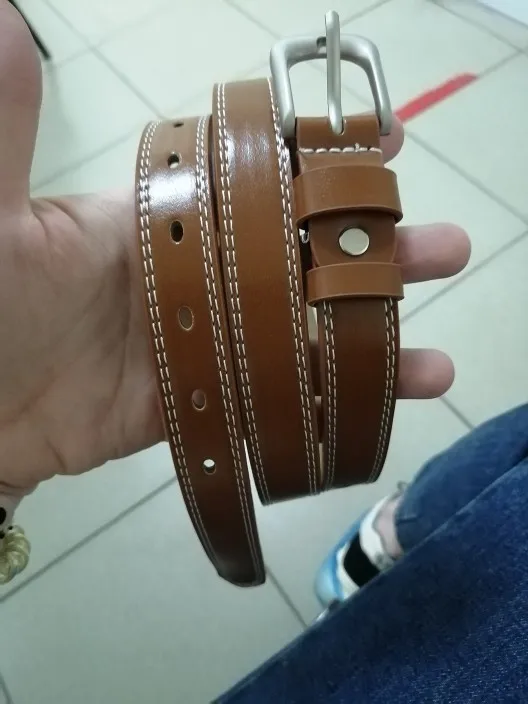 за 234 рубля купленный ремень,хоть и не кожаный,но считаю удачная покупка.длина ремня 100см,ширина 2,2 см.безусловно ширина ремня мала под джинсы,но под платье или трикотажные брюки с высокой талией будет идеально! при покупке был применен купон в 152рубля, полученный от продавца.заказ был сделан 22 марта,прибыл в НСК 7 апреля в объединенной посылке с другими заказами.беру у этого продавца 2-й ремень.правда первый купленный(широкий черный с клёпками под платье) так ни разу и не носила,хотя купила давно-несколько лет назад-не было случая надеть.соответственно и как он в носке сказать не могу-нечего! у этого ремня красивый цвет темно-коричневый с оттенком бордо.НО именно мой ремень НЕ КОЖА! не натуральная кожа,а прессованная искуственная кожа.и ещё ремень мягкий наощупь и не тонкий примерно около 4мм в толщину.Но лично я покупкой довольна.и после носки этого ремня дополню отзыв о его качестве.PS: спасибо продавцу за подарки:перчатки и штучку для проделывания дополнительных дырок в ремне