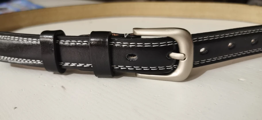 très belle ceinture en cuir véritable très belle couture erreur dans la longueur mais pas de problème j'ai contacté le vendeur qui répond en 10 minutes qui a reconnu l'erreur et m'en retourne une de la bonne longueur et m'offre celle que j'ai reçu en dédommagement. Encore un grand merçi a ce vendeur.