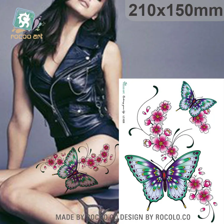 Rocooart LC828 3D Сексуальная Бабочка временная татуировка наклейки боди-арт татуаж красивые цветы поддельные татуировки для женщин
