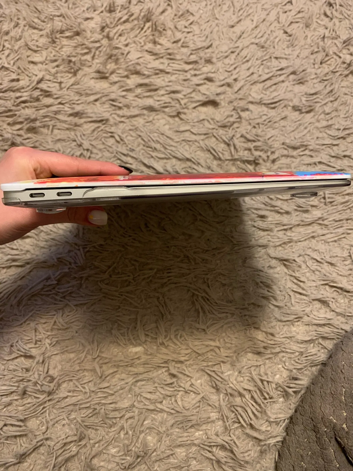 Отличный чехол. Шёл всего девять дней. Плотно сел, классный наощупь, покрытие рисунка частично глянцевое, частично матовое. Плюс пленка и накладка на клавиатуру. Пленку пока не клеила, а накладка - странная штука, может привыкну) но претензий нет) благодарю!