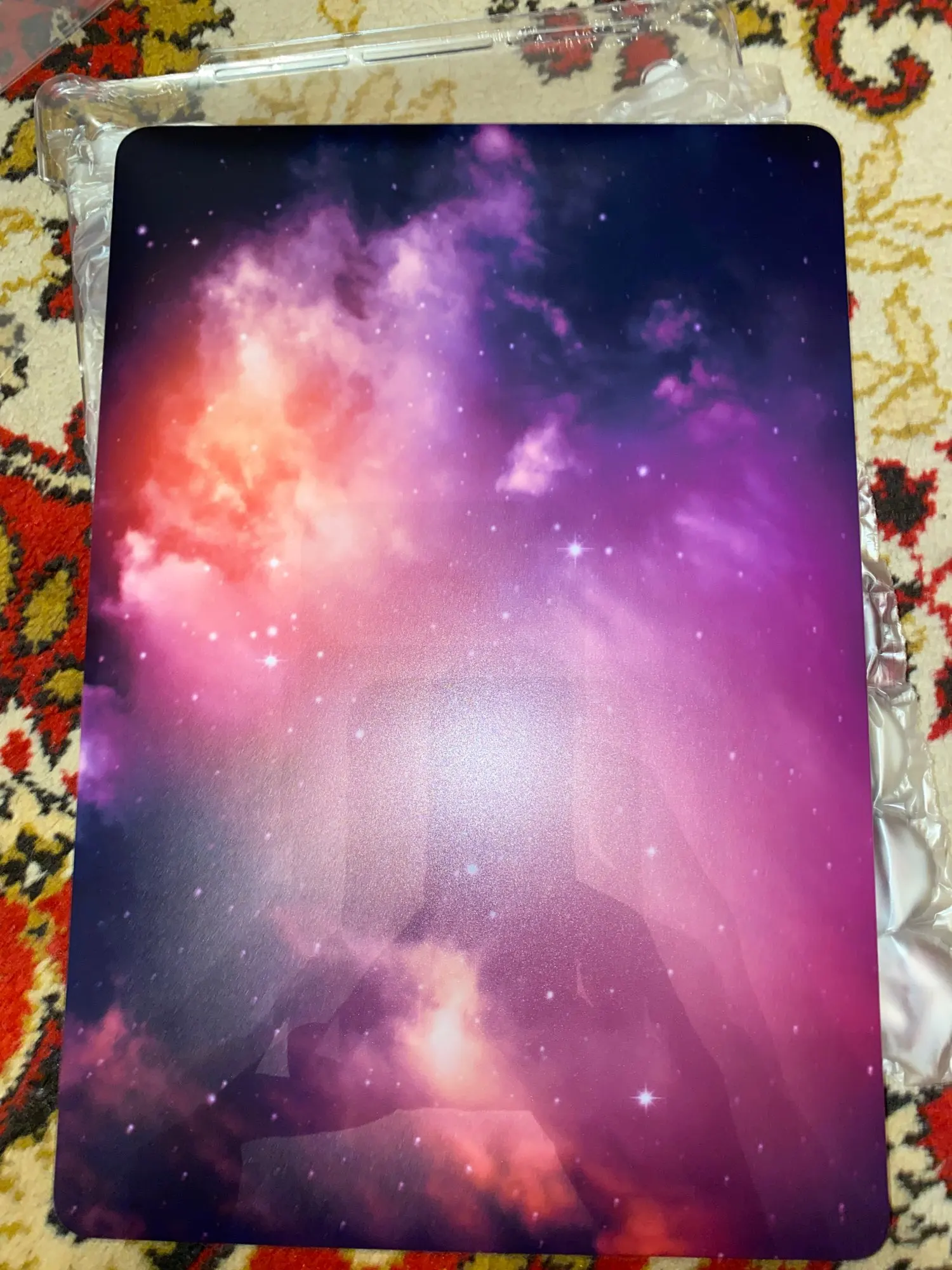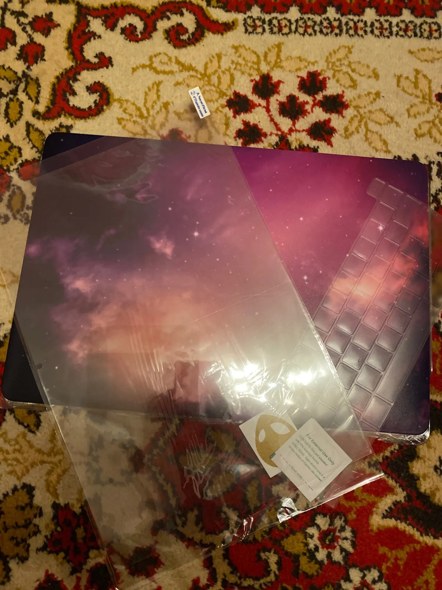 Отличный чехол, выглядит супер. В комплекте, чехол, защитная плёнка на экран и силиконовая накладка для клавы + наклейка инопланетянина)