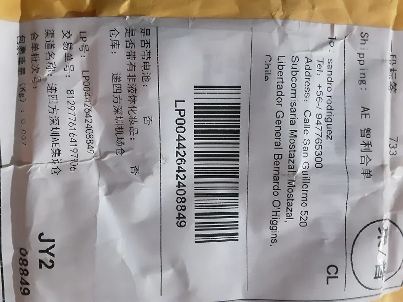 Страна: CL Доставка: Standard Shipping 03.12.2020