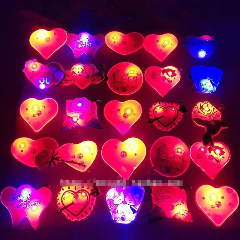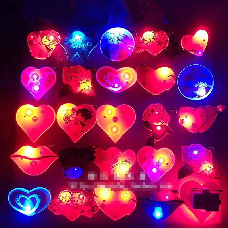 25 шт., светящаяся брошь в форме сердца со светодиодной подсветильник кой