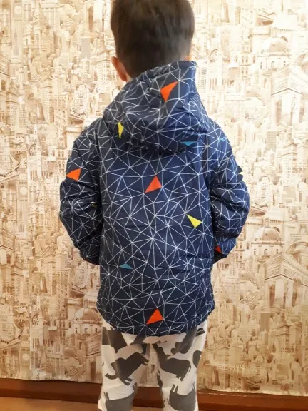 Курточка славненькая. На раннюю осень, чуть теплее ветровки. Маломерит, размер куртки 110 подошёл свободно мальчику худенькому с ростом 100 см. Рекомендую.
