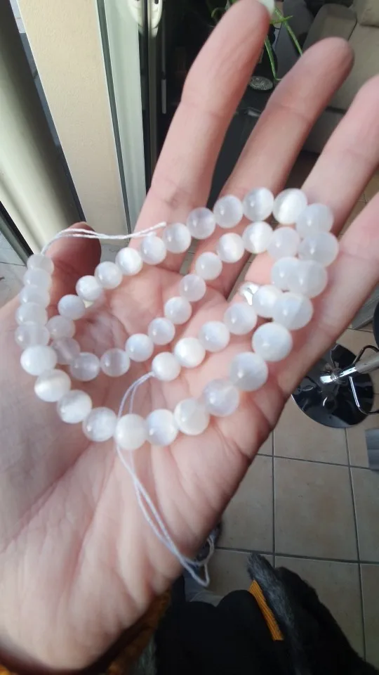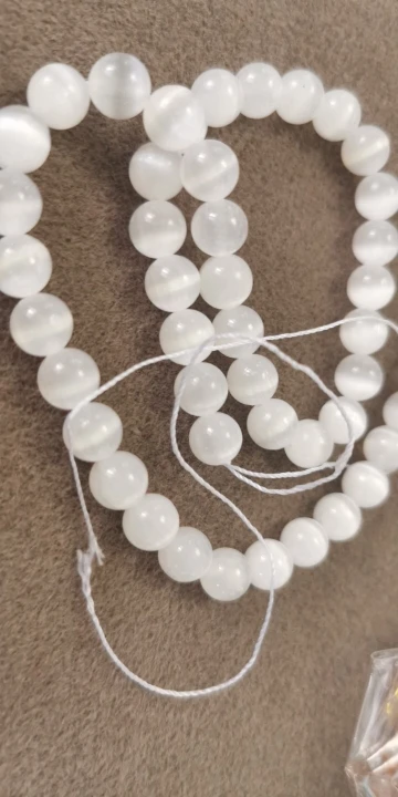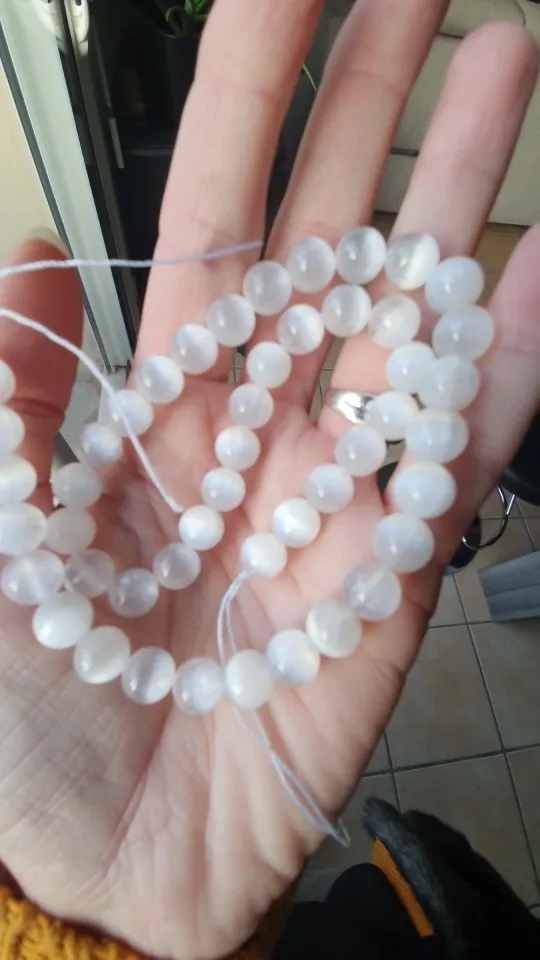 Обратите внимание: материал селенита/кальцита очень мягкий, некоторые из них можно даже соскоблить ногтями. Поэтому у них больше не круглых бусин, чем у других камней.
