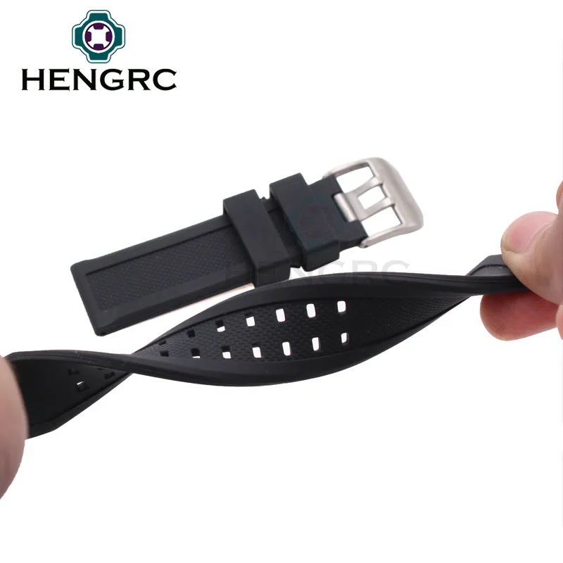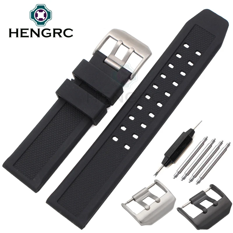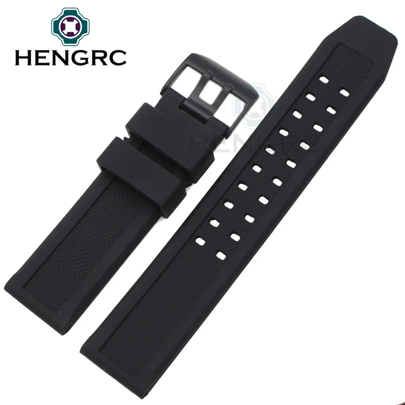 Ремешок HENGRC силиконовый для мужских часов, черный спортивный резиновый браслет из нержавеющей стали с черной пряжкой, 23 мм