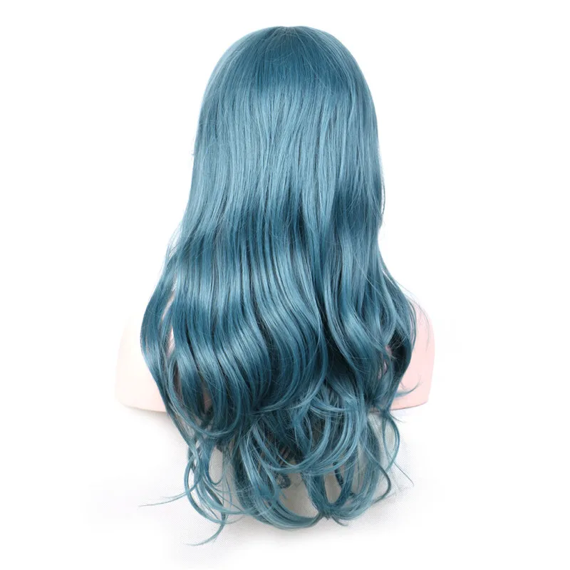 Большие размеры синий дым синтетические парики с челкой Косплэй парики для Для женщин длинные волнистые волосы Розовый и красный цвет блонд зеленого, белого и черного цвета Цветной