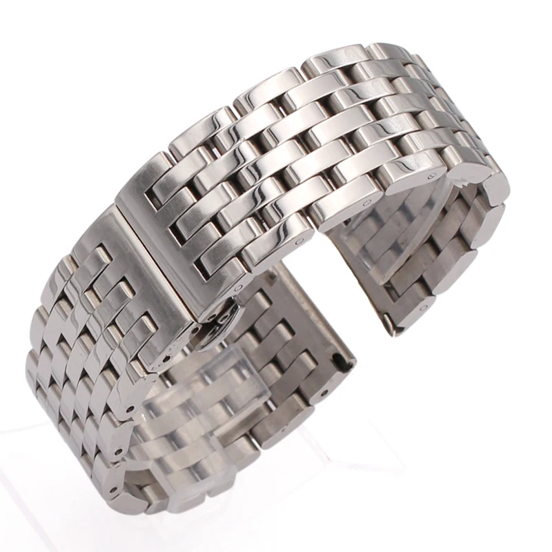 Браслет из нержавеющей стали для мужских и женских часов, полированный металлический ремешок, аксессуары для наручных часов, 20 мм 22 мм