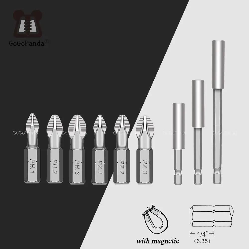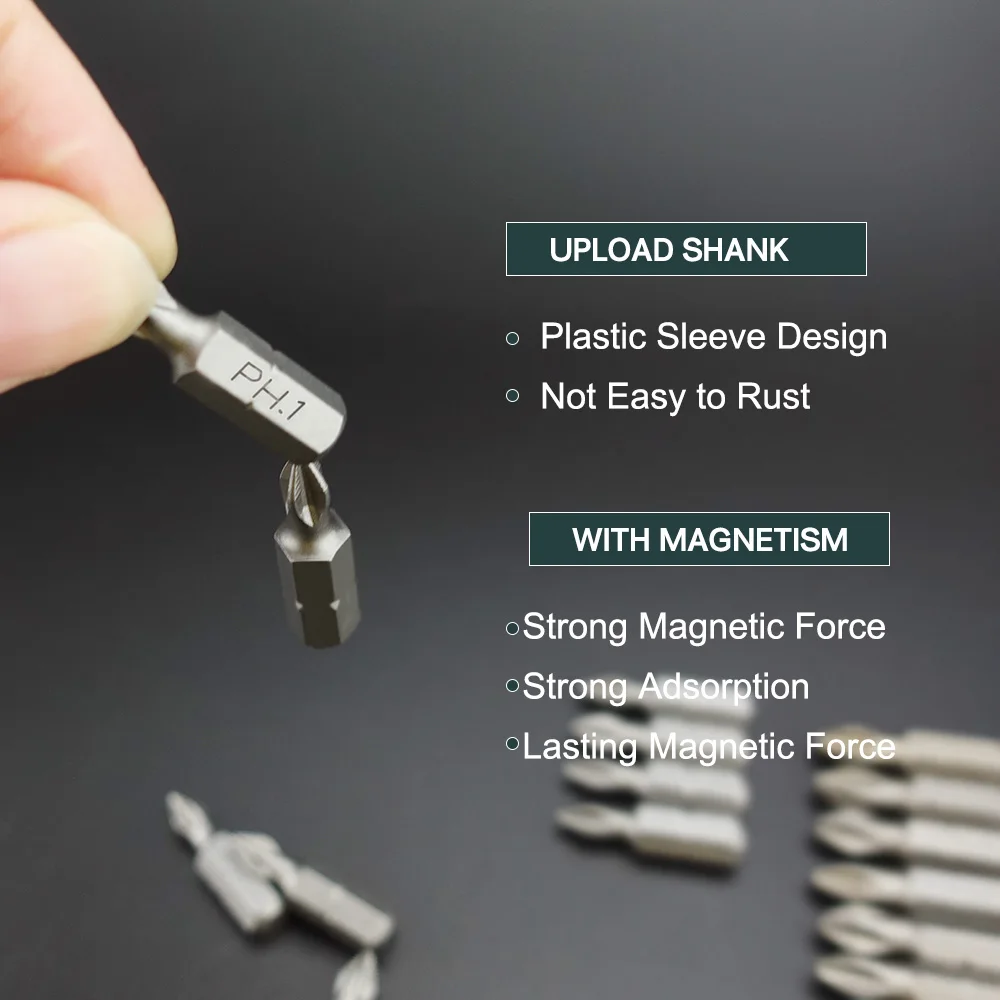 Бесплатная доставка, 10 шт.Лот, 25 мм, фреза поводка, биты с шестигранным хвостовиком, Нескользящие Биты для отвертки, магнитные одиночные головки PZ1 PH