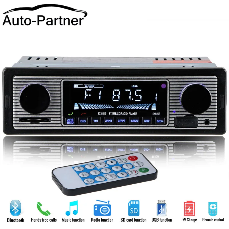 Автомагнитола, 12 В, 1 din, с Bluetooth, стерео плеером, MP3, FMUSB...