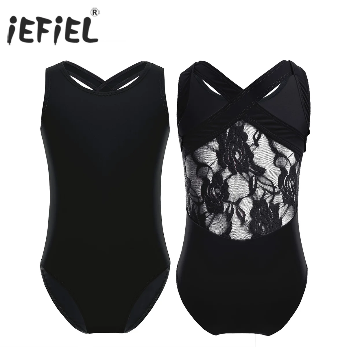 IEFiEL балетный купальник без рукавов для девочек, гимнастический комбинезон с кружевной спинкой, балетная пачка, танцевальный костюм, Детский боди