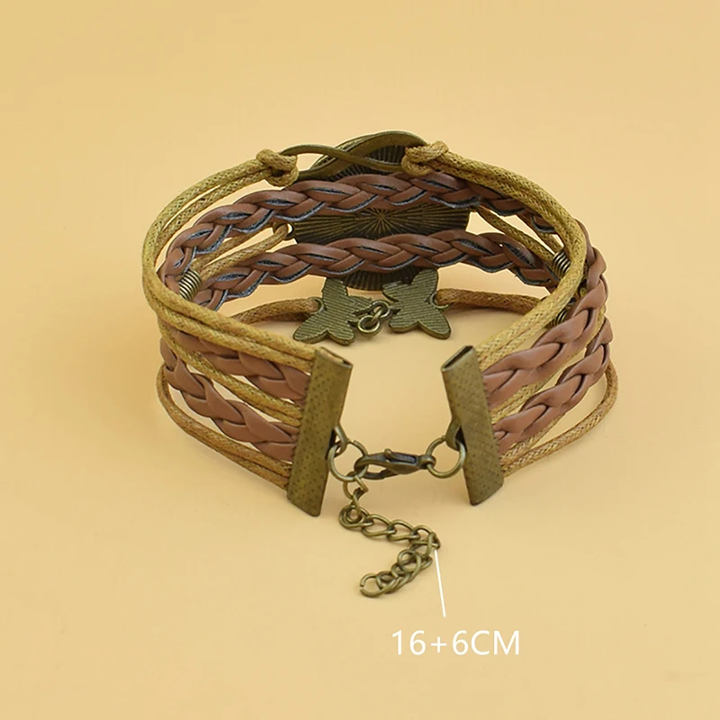 Модный японский аниме Бронзовый кожаный плетеный браслет стеклянный...