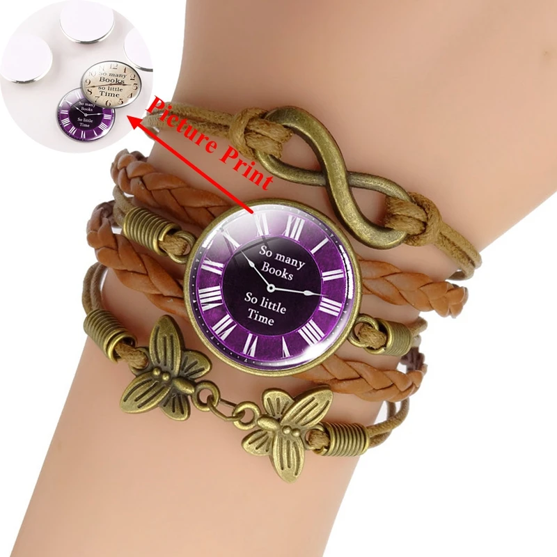 Так много книг, таким образом, мало времени, книга Ювелирные изделия коричневого цвета браслет со стеклянным кабошоном браслет (не настоящие часы дюйма) подарок для изготовления обложек книг Lover