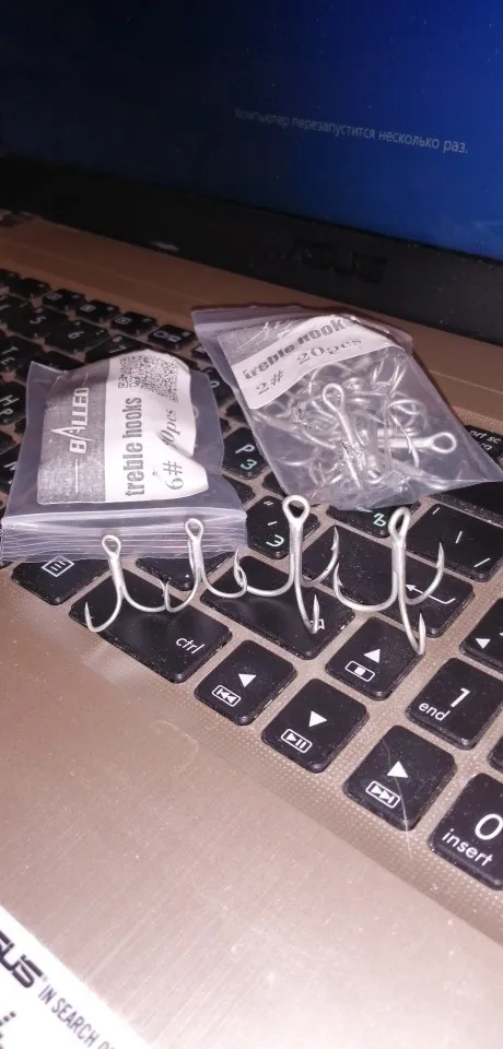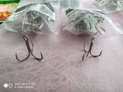 Тройники хорошие, острые, почти без брака. Сталь в меру толстая, пружинит хорошо. Насколько будут держать нагрузку проверим в летний сезон. Брал для замены фурнитуры на китайских воблерах и локальных копиях.