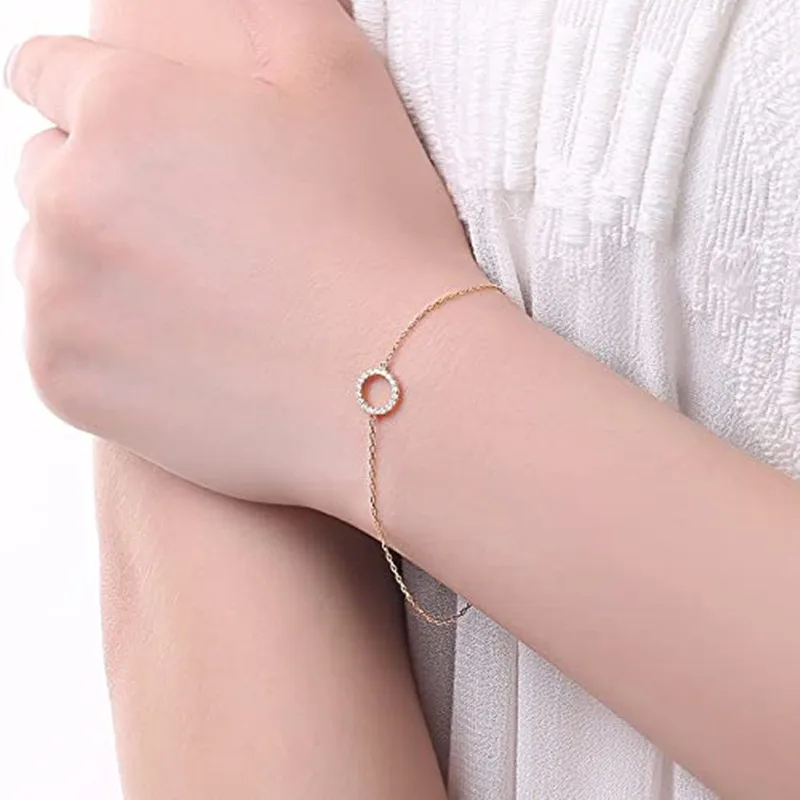 Женский Круглый браслет с фианитом, изящный браслет с золотым кубическим цирконием, для свадьбы или юбилея
