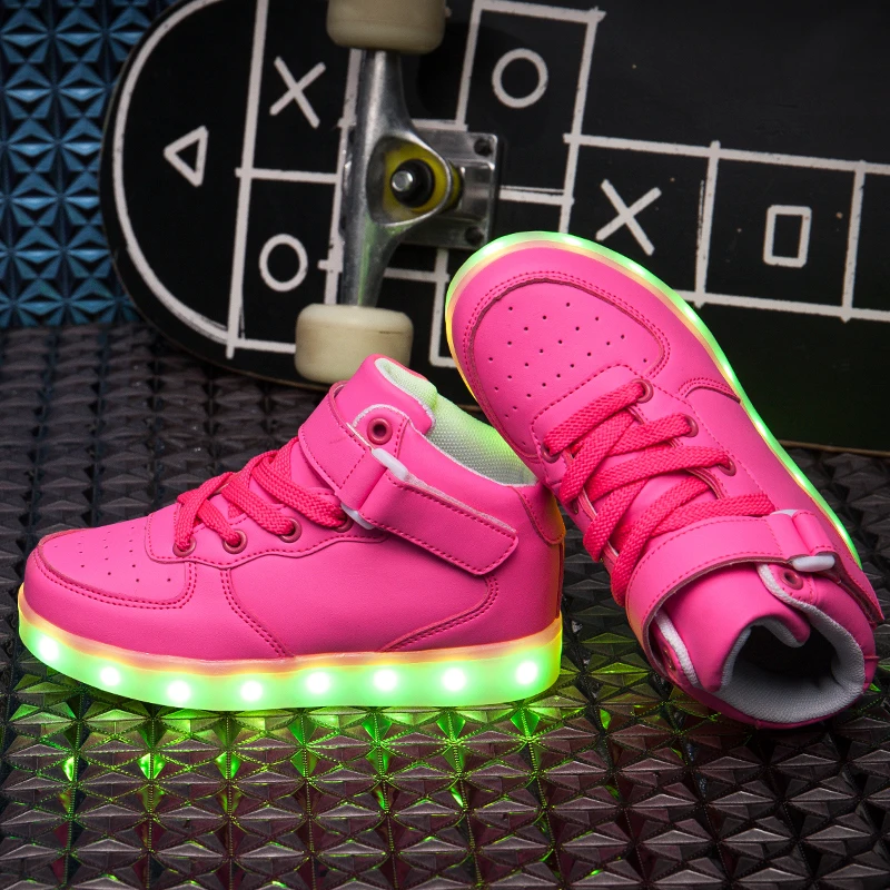 Детские светящиеся кроссовки на липучке, модная обувь с светильник светкой, зарядка через Usb, для мальчиков и девочек, Размеры 25-37