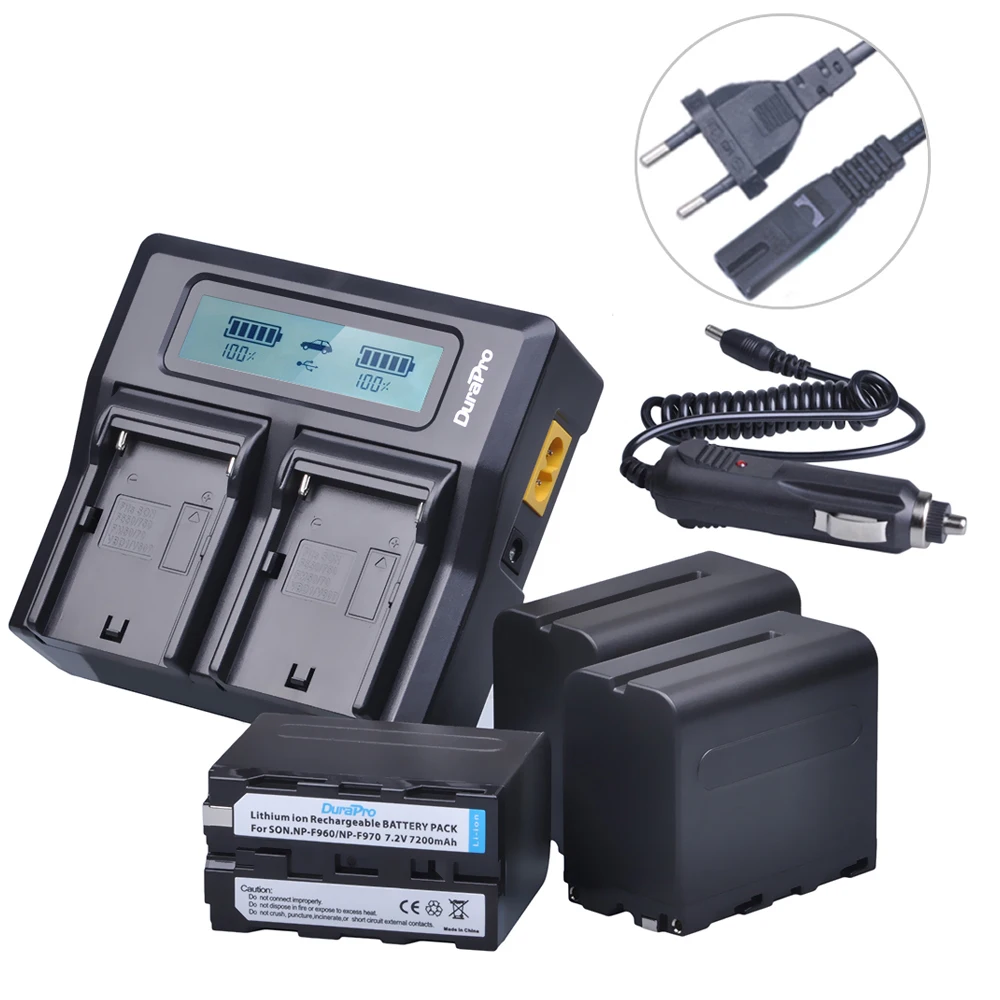 2 шт. 7,2 В 7200 мАч NP-F960 NP-F970 NP F960 F970 аккумуляторные батареи + LCD двойное зарядное устройство для SONY HVR-HD1000 HVR-HD1000E
