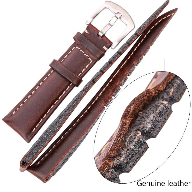 Ремешок для часов из натуральной кожи, черный, темно-коричневый, 18, 19, 20, 21, 22, 24 мм, с пряжкой из нержавеющей стали