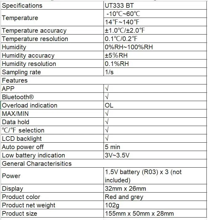 UNI-T UT333BT Bluetooth мини цифровой измеритель температуры воздуха, влажности, термометр, гигрометр, тестер UT333 обновленный