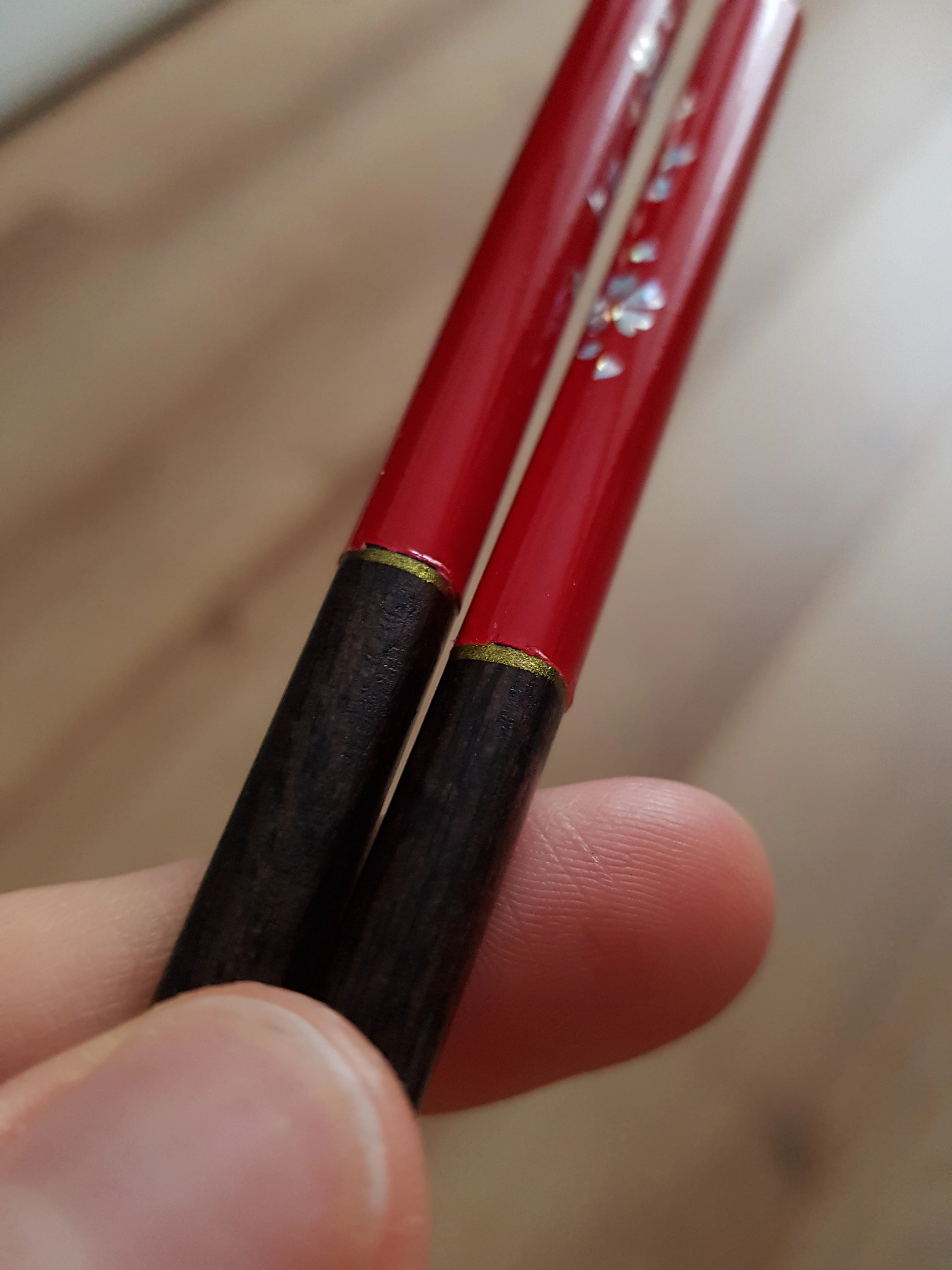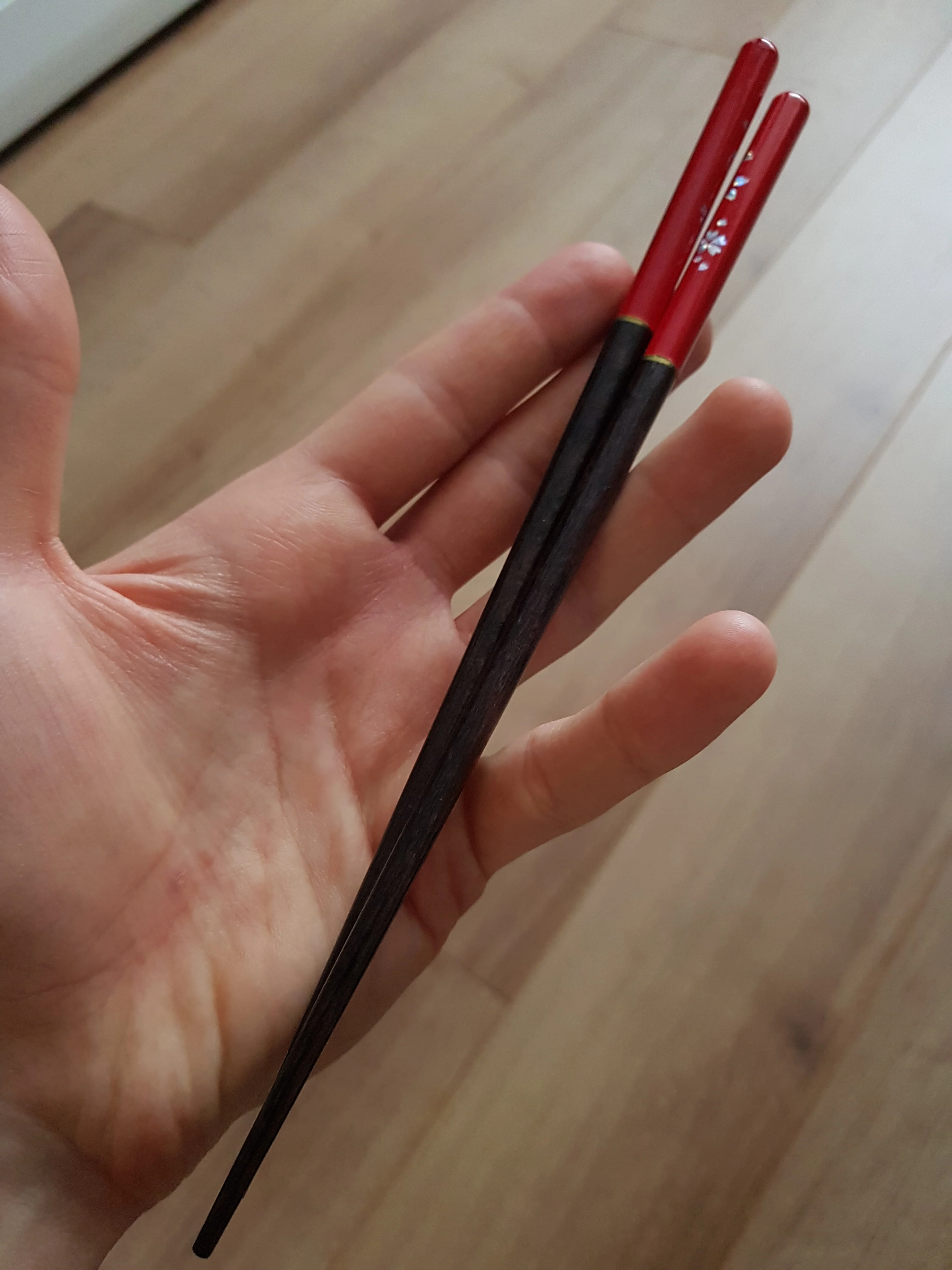 Палочки для еды красивые, намного красивее, чем я ожидал. Наконец-то я купил два цвета, и я в восторге. Теперь используйте его и учитесь есть с ними.