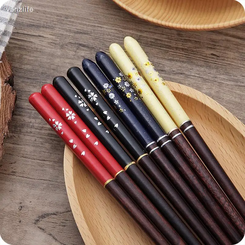 Китайские палочки для еды, 4 парыvanzlife, вишневые деревянные палочки, остроконечная домашняя посуда, длинные, не скользящие палочки для суши