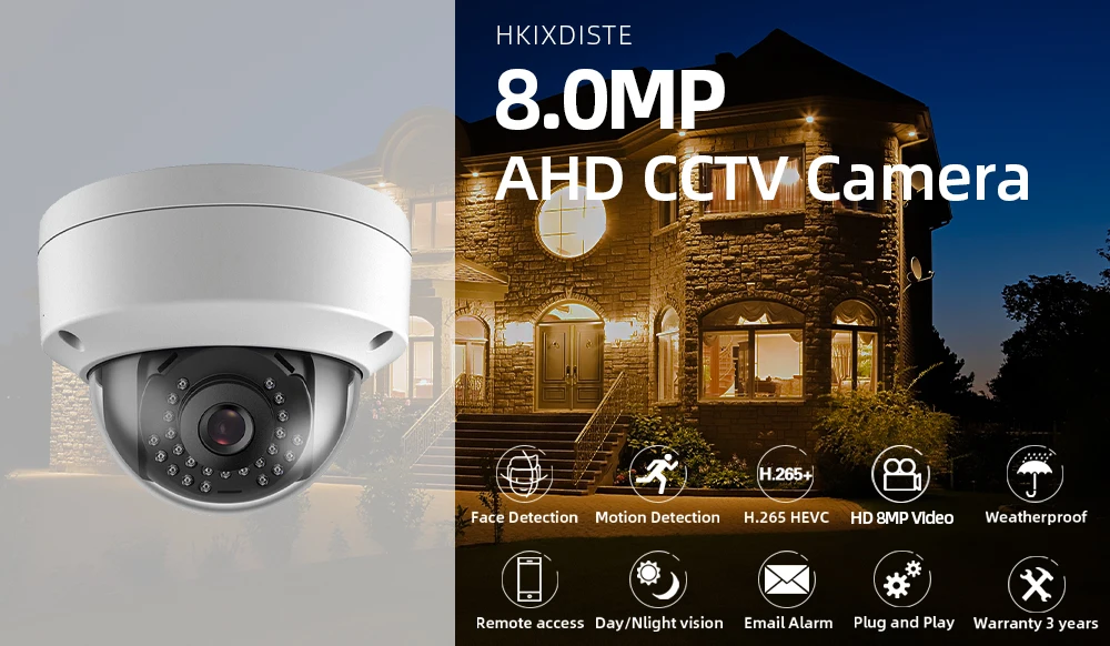 1, Ультра HD 4K дисплей высокой четкости;2. Ультра HD 8MP AHD камера, металлический материал, IP66 водонепроницаемый, подходит для внутреннего и наружного использования; Пыленепроницаемый, надежный для домашней безопасности;3. Улучшенное H.265 Сжатие видео, подключи и работай, простота установки;4. Поддержка распознавания лица, записи лица, воспроизведения лица, обеспечивает ультра высокое разрешение видео наблюдения, обеспечивая максимальную детализацию и четкость доступны;5. Поддержка ночного видения Ultra HD, расстояние передачи составляет 500 метров;6. Поддержка IR-CUT переключателя двойного фильтра, днем и ночью для достижения мониторинга, цвет не является частичным искажением цвета;7. Поддержка обнаружения движения, оповещения по электронной почте, воспроизведения видео;8. Поддержка Android,Iphone,Ipad, ПК, P2P просмотра;9, удаленный доступ в любом месте, в любое время;