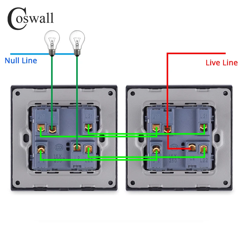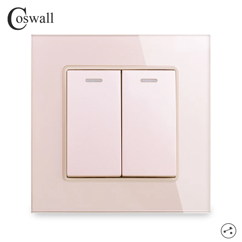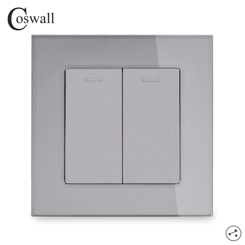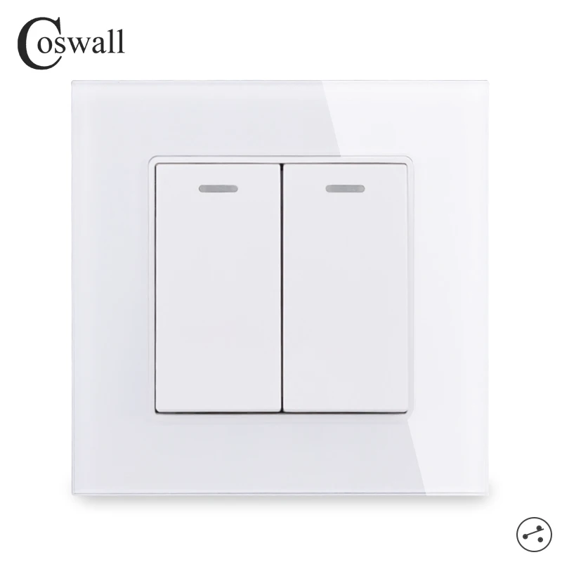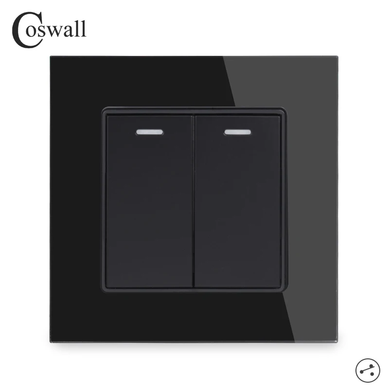 Стеклянная панель COSWALL, 2 клавиши, 2 канала, переключатель, переключатель, проход через лестницу, настенный переключатель, серия 16A C1