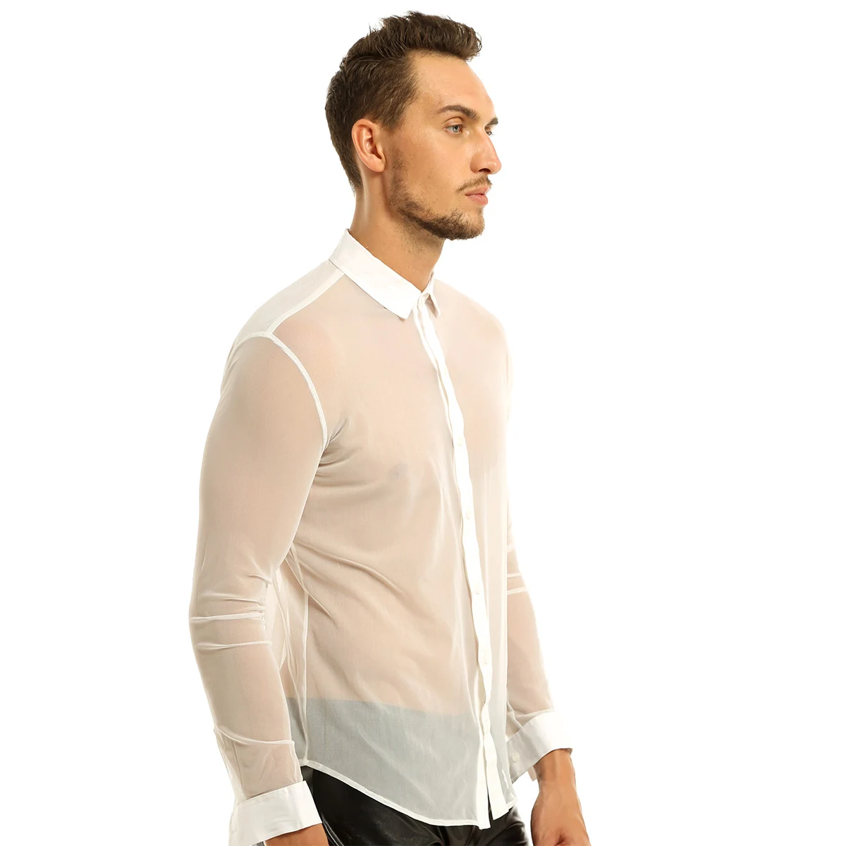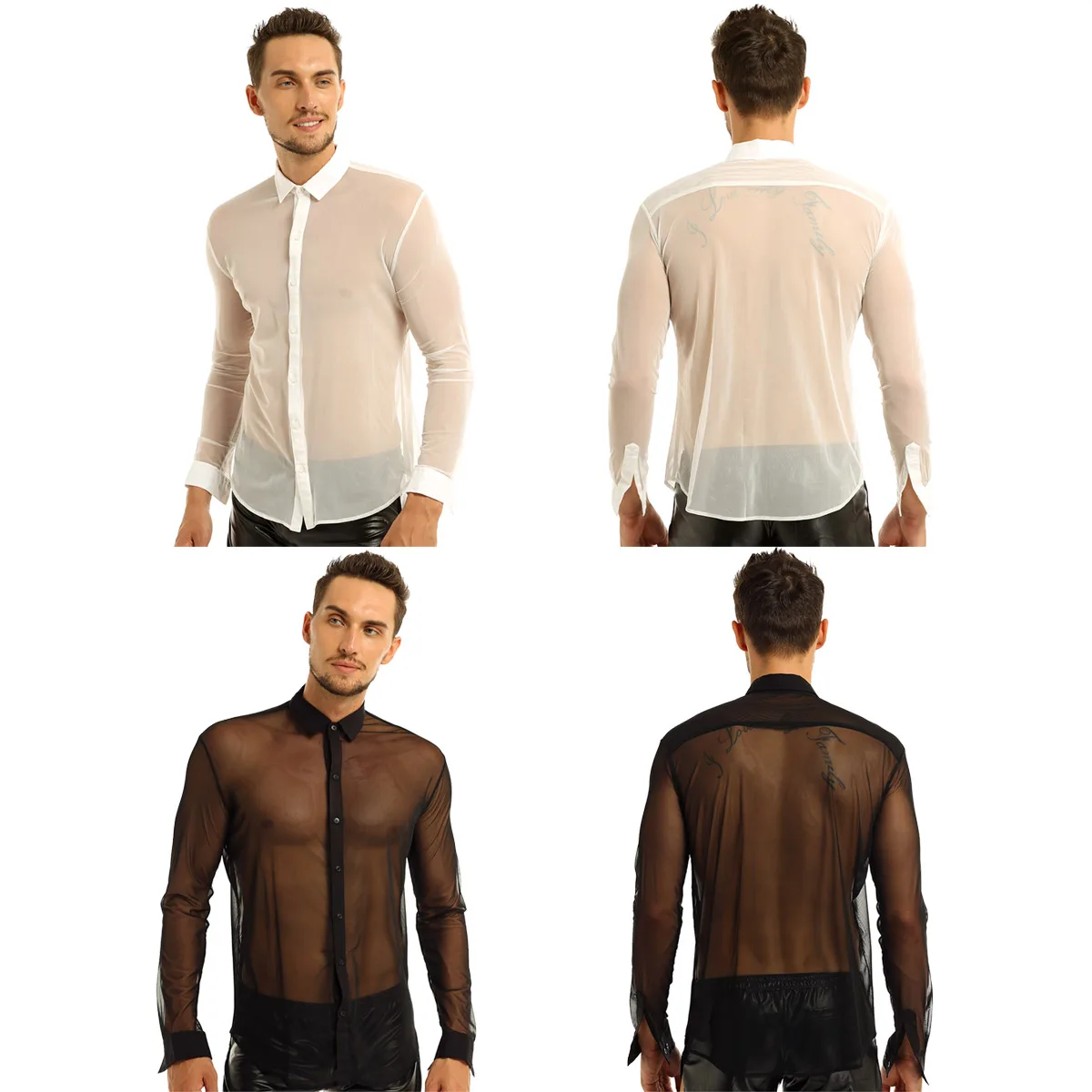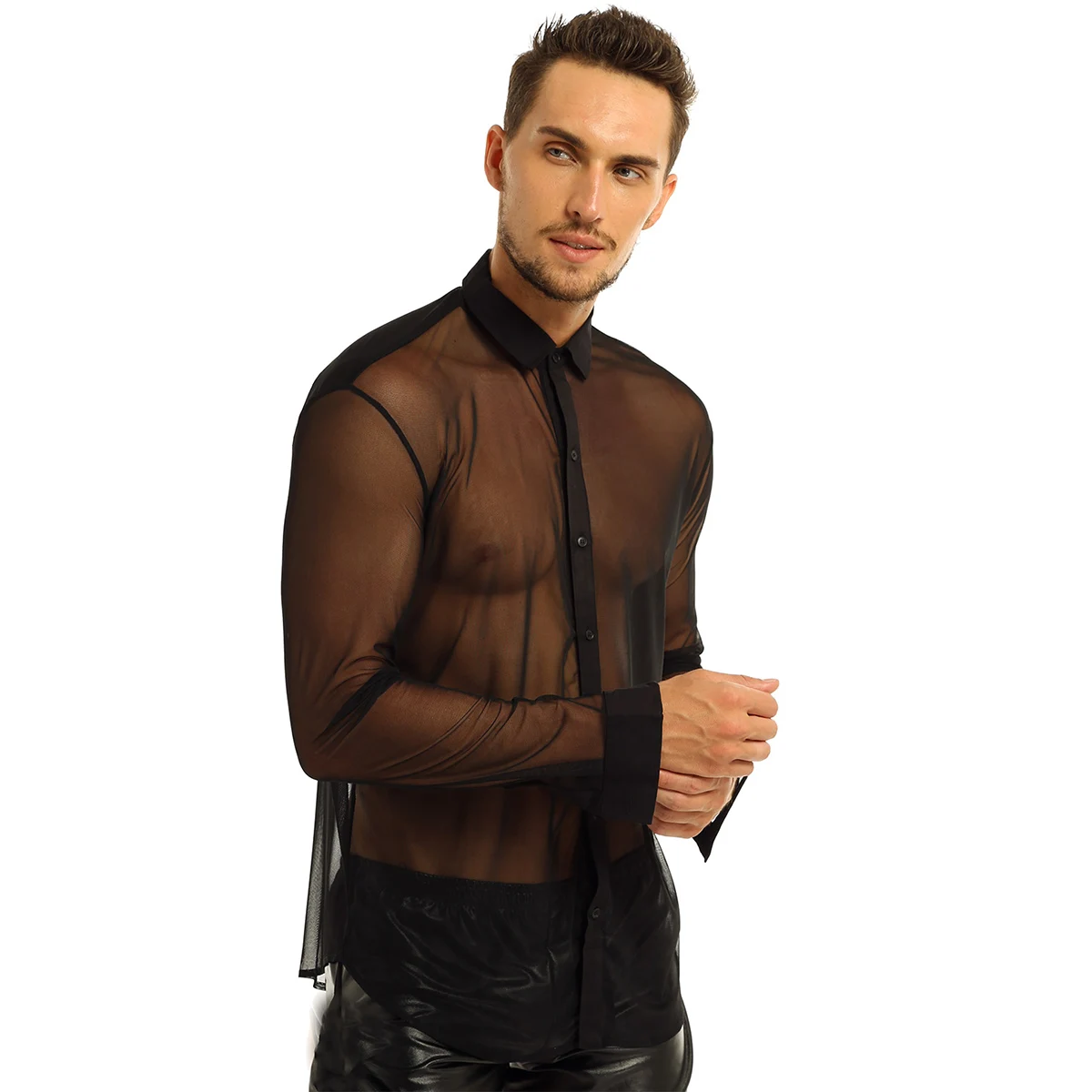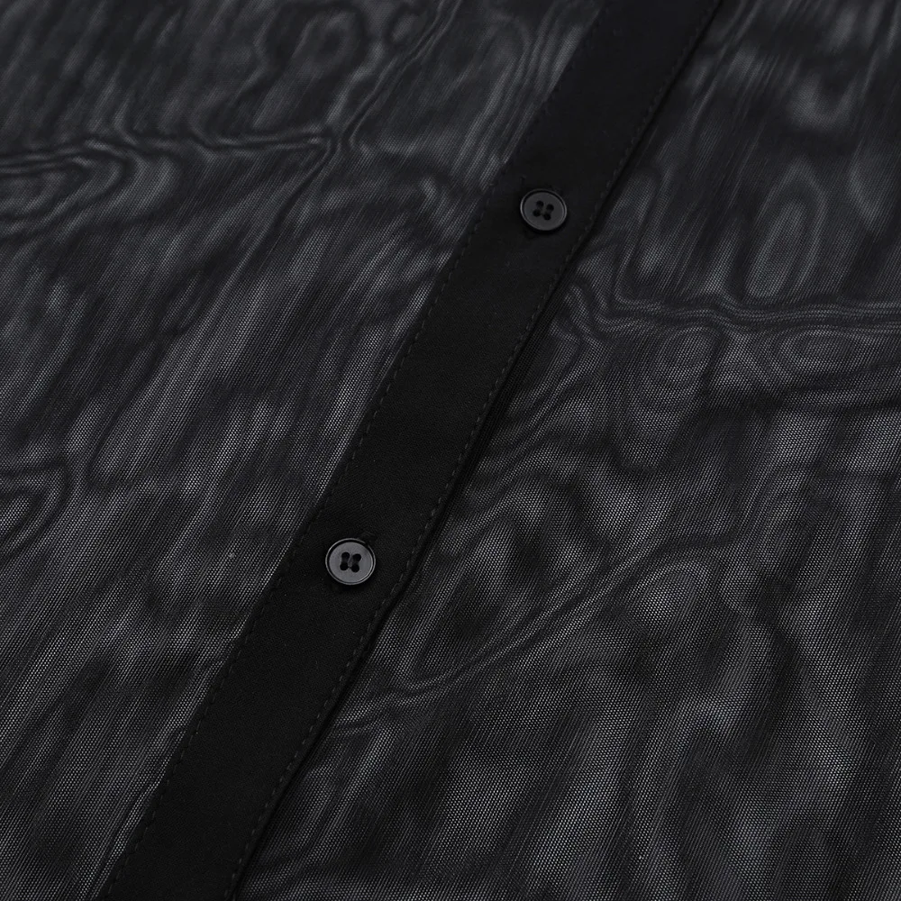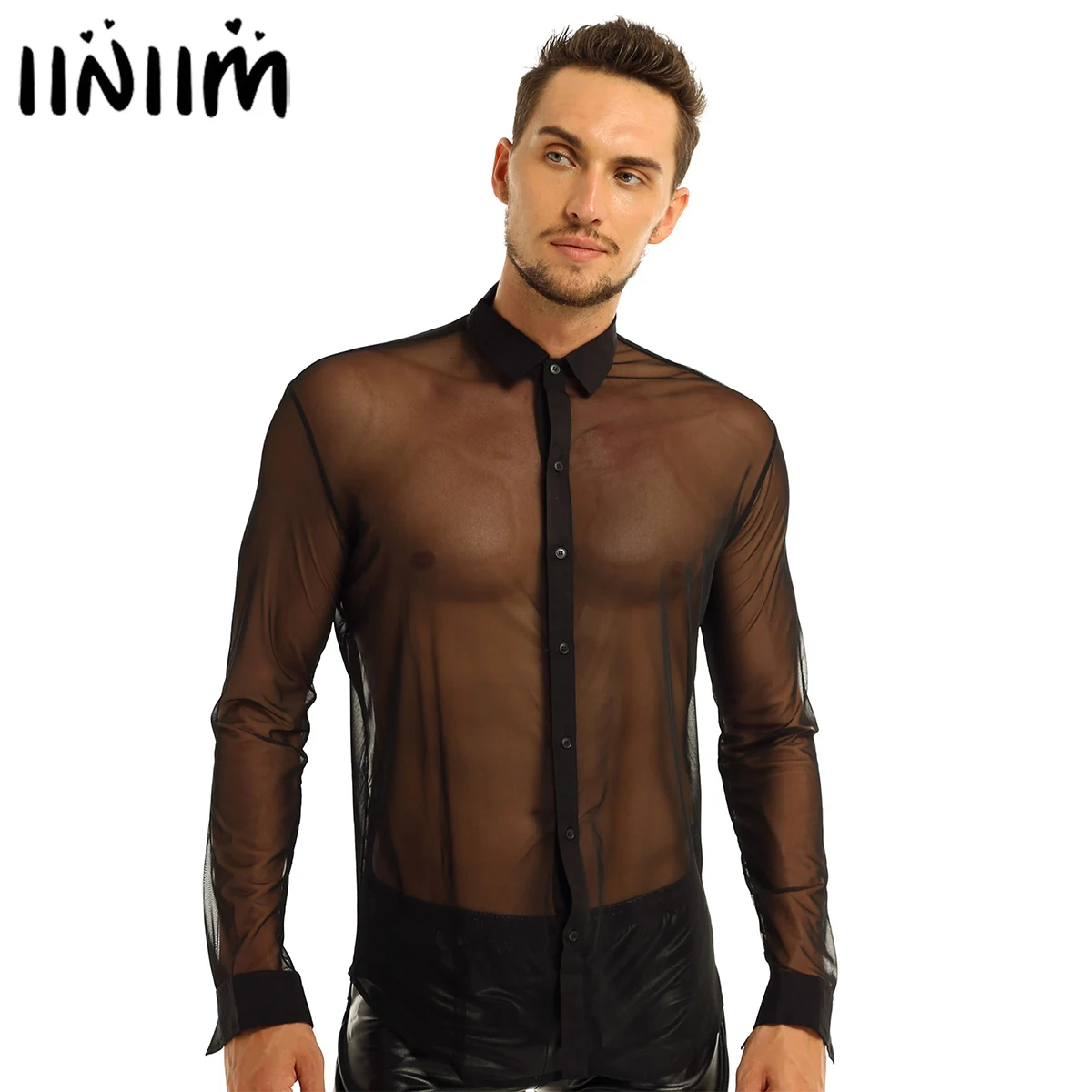 Iiniim Мужская модная прозрачная сетчатая Клубная одежда с длинными рукавами и отложным воротником, рубашка для клуба, вечеринки, WetLook