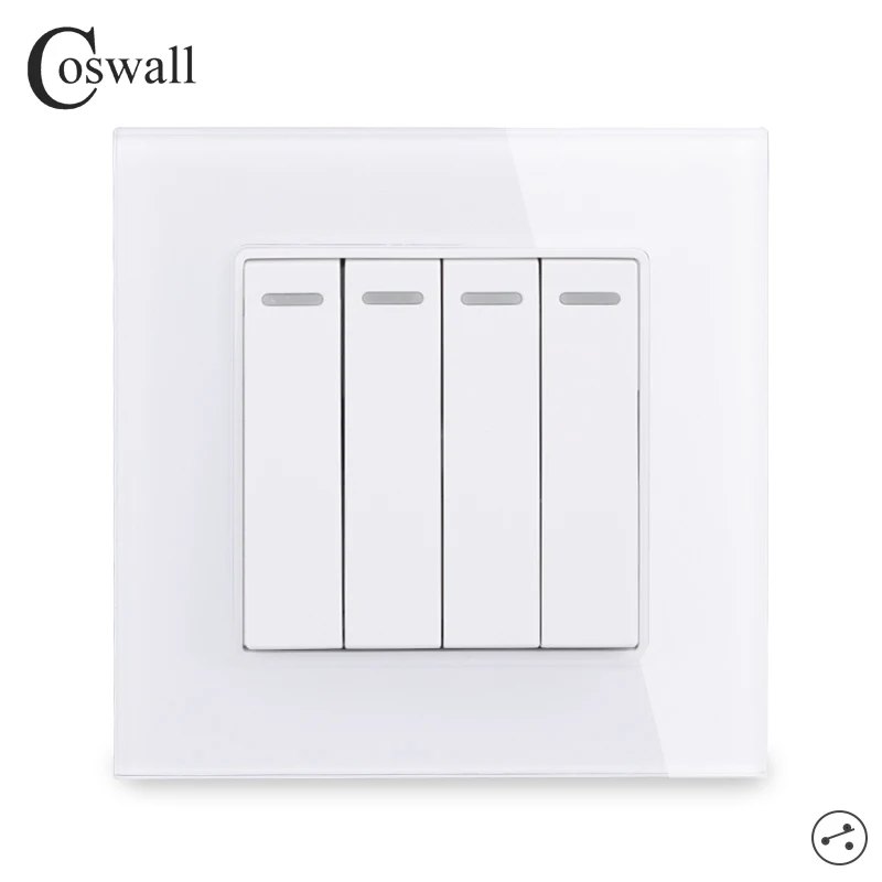 COSWALL 4 банды 2 пути роскошный хрустальный стеклянный панельный светильник Переключатель ВКЛ/ВЫКЛ пропуск через настенный выключатель 16А