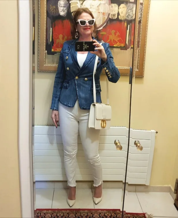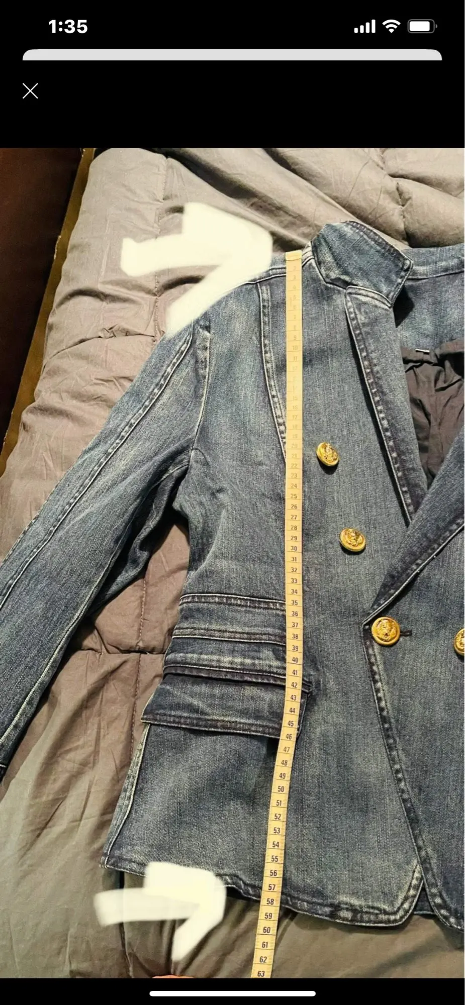 Женский джинсовый Блейзер, двубортный блейзер с металлическими пуговицами в виде льва, верхняя одежда, 2021