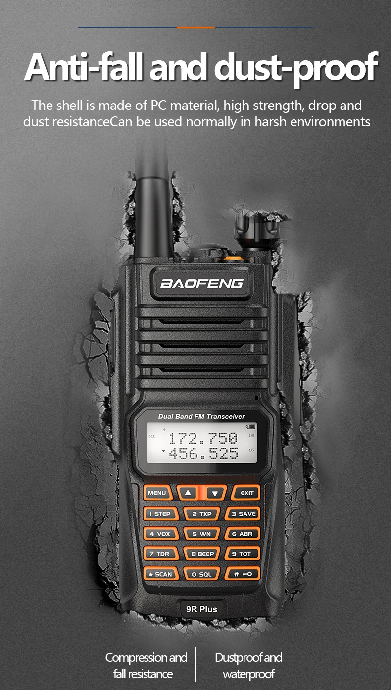 Baofeng UV-9R Plus 10 Вт Высокая мощность IP68 Водонепроницаемый двухстороннее радио Двухдиапазонная портативная рация обновленная версия UV9R