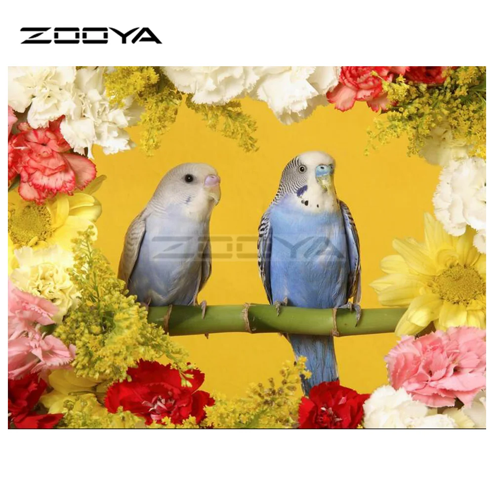 ZOOYA 5D алмазная вышивка сделай сам пара попугая птица цветы алмазная живопись вышивка крестиком квадратная вышивка Мозаика Украшение BK341