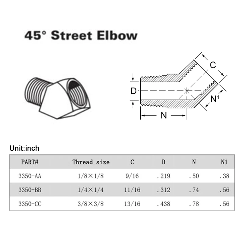 Фитинг для шлангов, латунный уличный колено 18 "14" 38 "12", 2 шт., 45 градусов, с резьбой NPT (модель 3350)