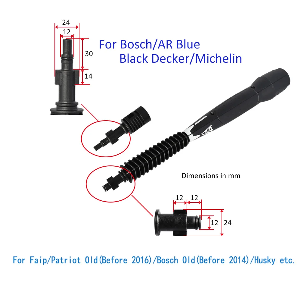 Важно:Так как существует два типа оружияДля этой марки моек высокого давления. Пожалуйста, проверьте размер соединения и убедитесь, что он подходит для вашей машины. Мы не несем ответственности за несовместимость пистолета и пистолета. Если вы не уверены, пожалуйста, свяжитесь с нами и отправьте нам фотографию вашего оригинального пистолета и пистолета, мы поможем выбрать подходящий продукт.