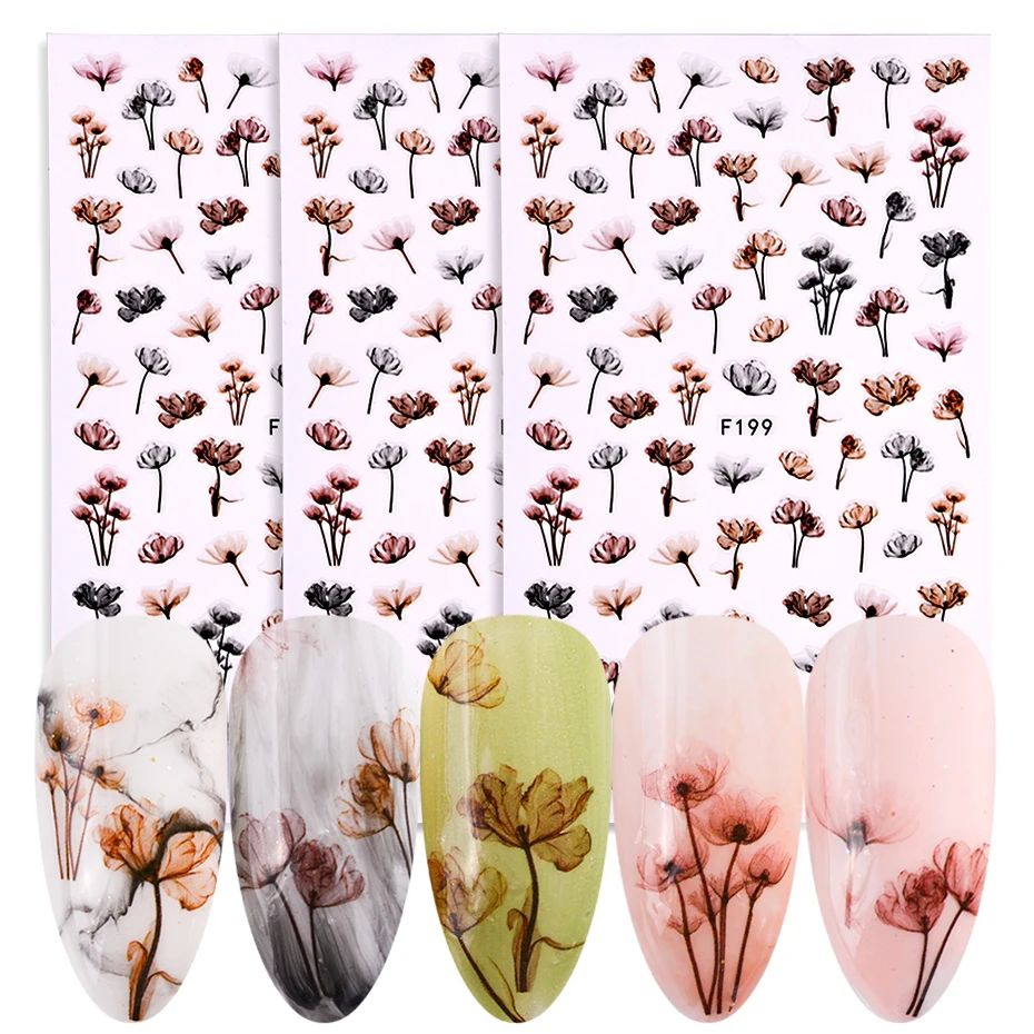 3D наклейки для ногтей с тиснением, 1 лист, Цветущий цветок, стикеры 3D на ногти Nail Art наклеек, наклейки для маникюра и дизайна ногтей, декоративные наклейки SAF199