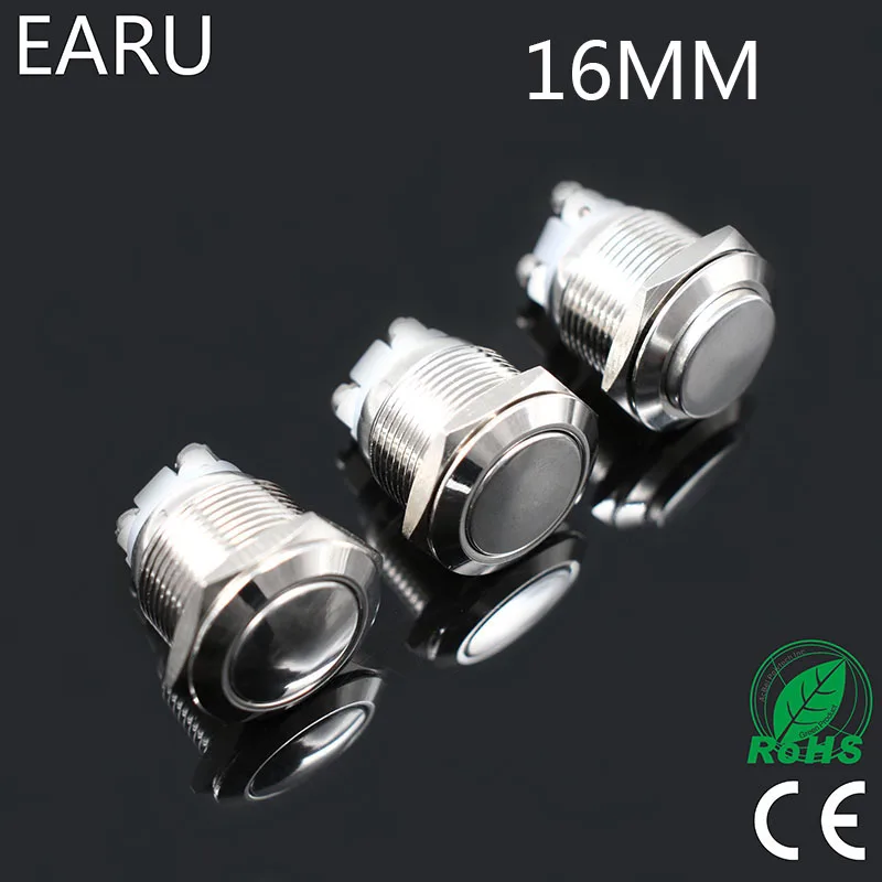 Бесплатная доставка 16 мм Кнопка запуска звукового сигнала мгновенный металлический кнопочный переключатель из нержавеющей стали горячий по всему миру