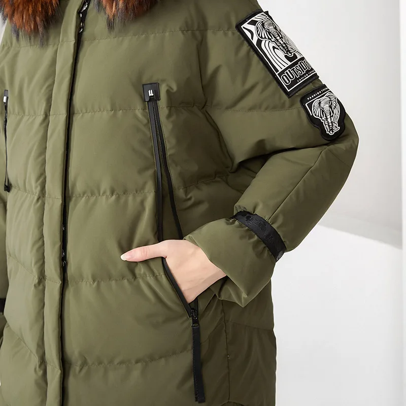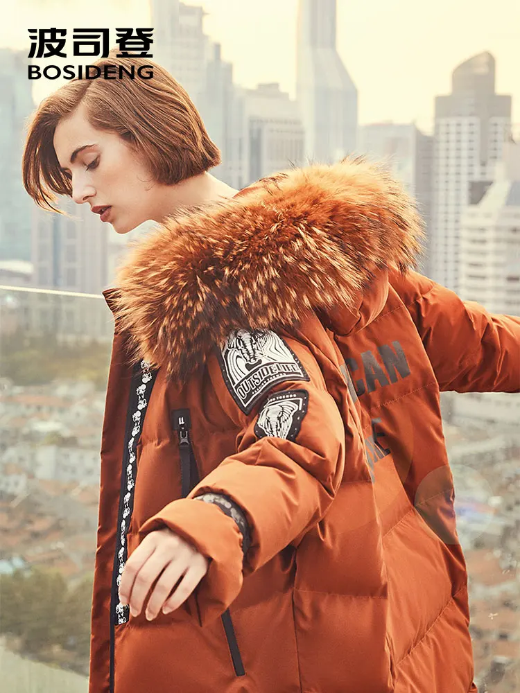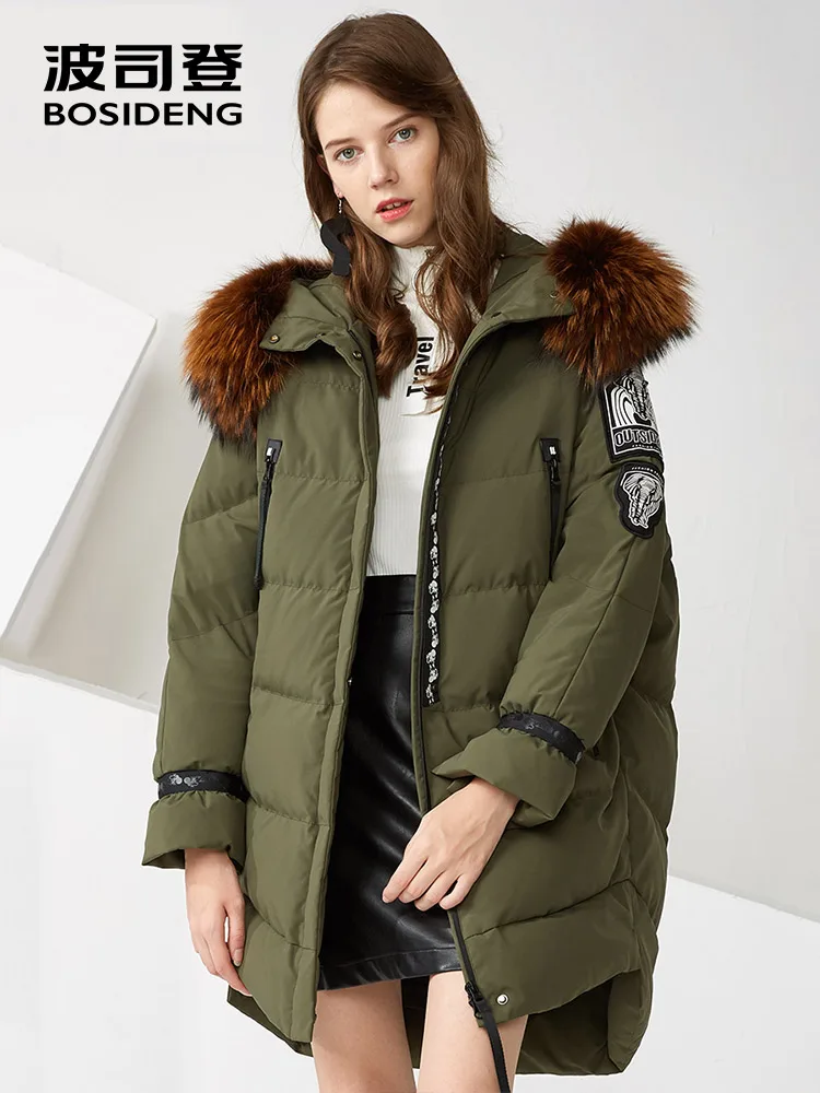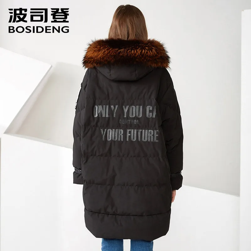 BOSIDENG 90% белый гусиный пуховик, длинная куртка, женский большой воротник из натурального меха, свободная длинная парка, общая длина B70146232