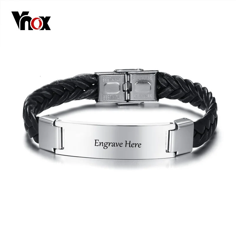 Мужской браслет с гравировкой Vnox, плетеный браслет из натуральной...