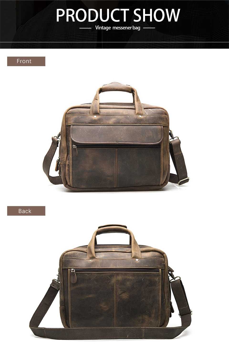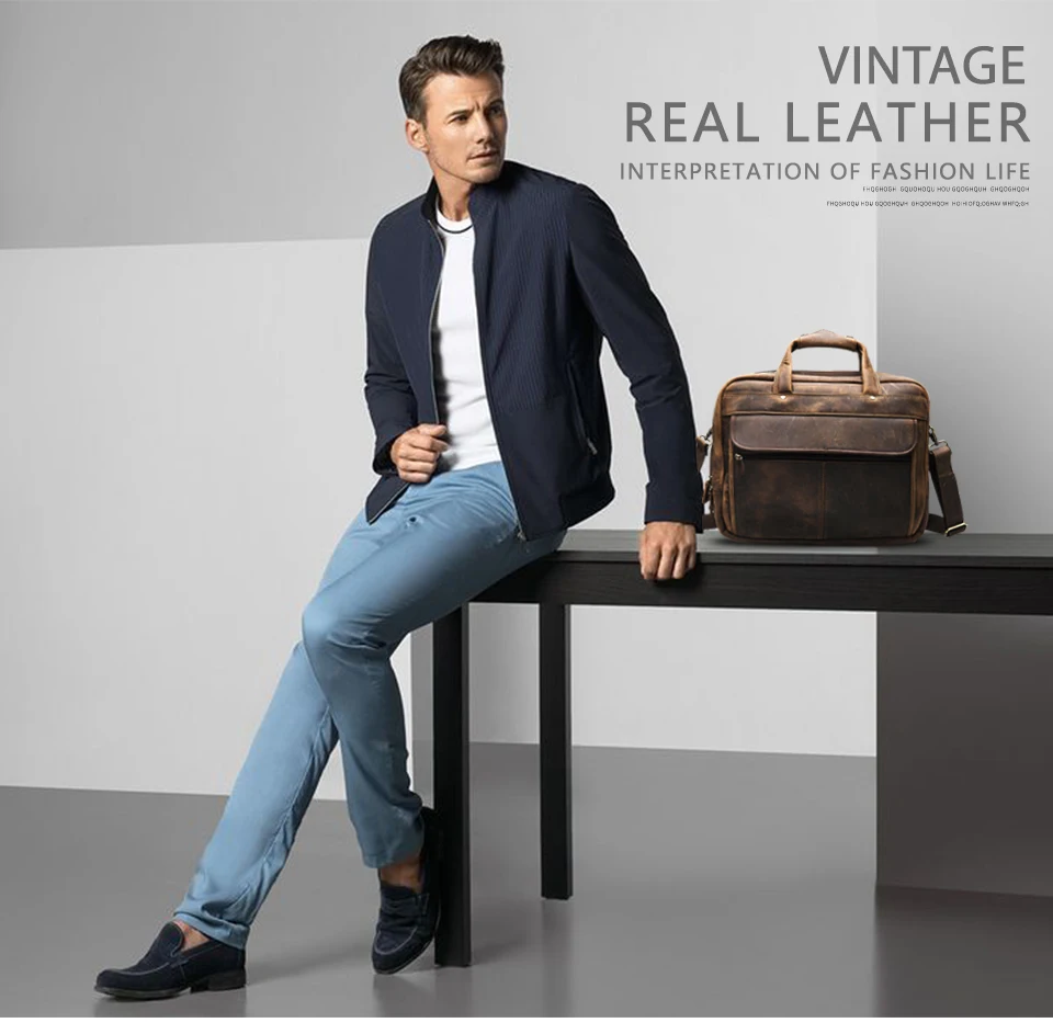 Высококачественный мужской портфель из натуральной кожи в старинном стиле, деловой чехол для ноутбука 15,6 дюйма, сумка-мессенджер, портфель B1001