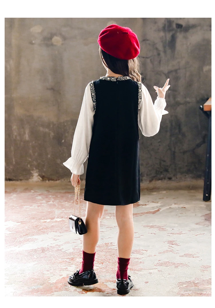 Название:Весенне-осеннее платье для девочек; vestidos; Детское платье; Детская брендовая одежда; Модные цветочные манжеты с жемчужинами и карманами для детей от 4 до 12 лет